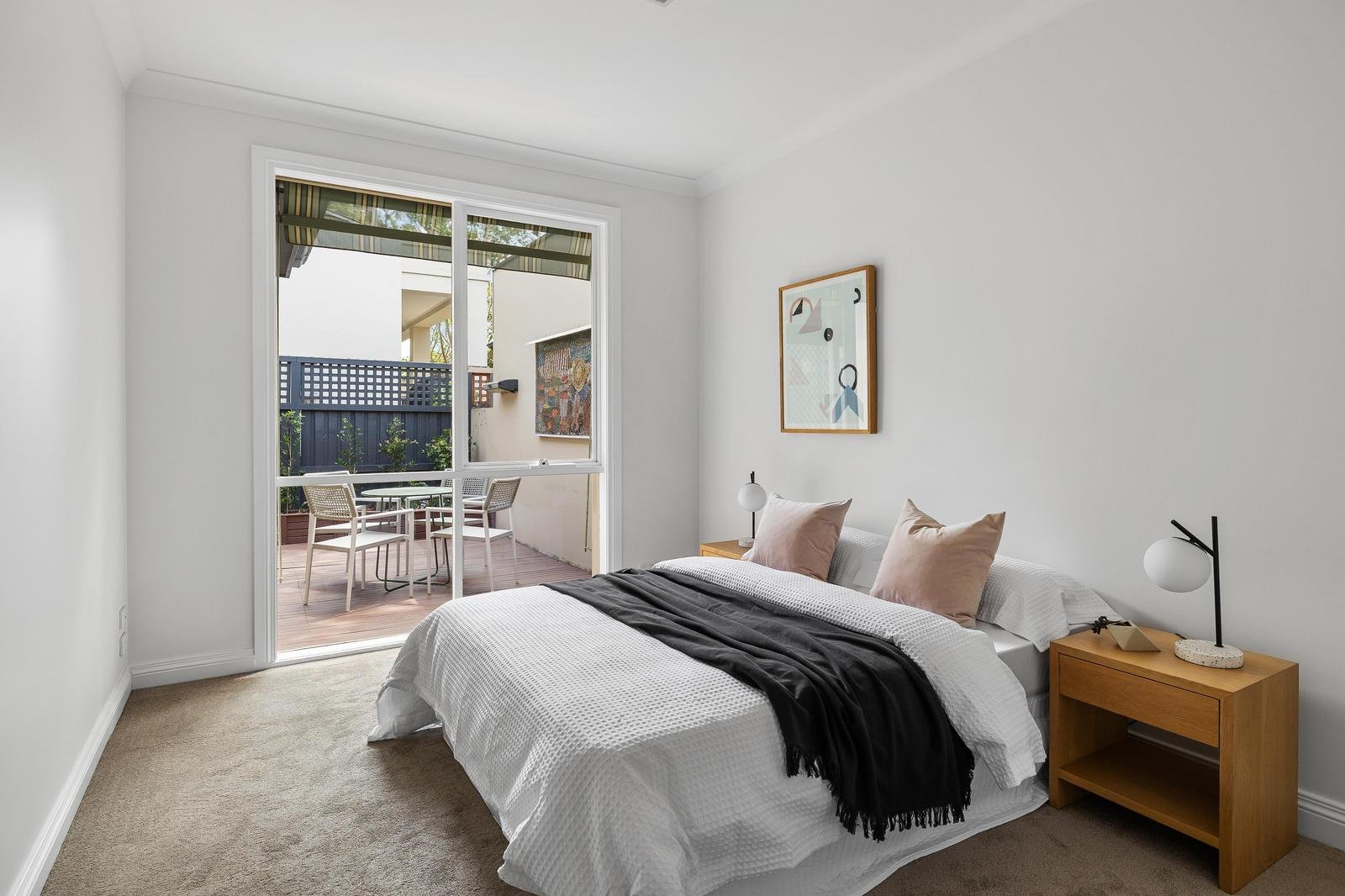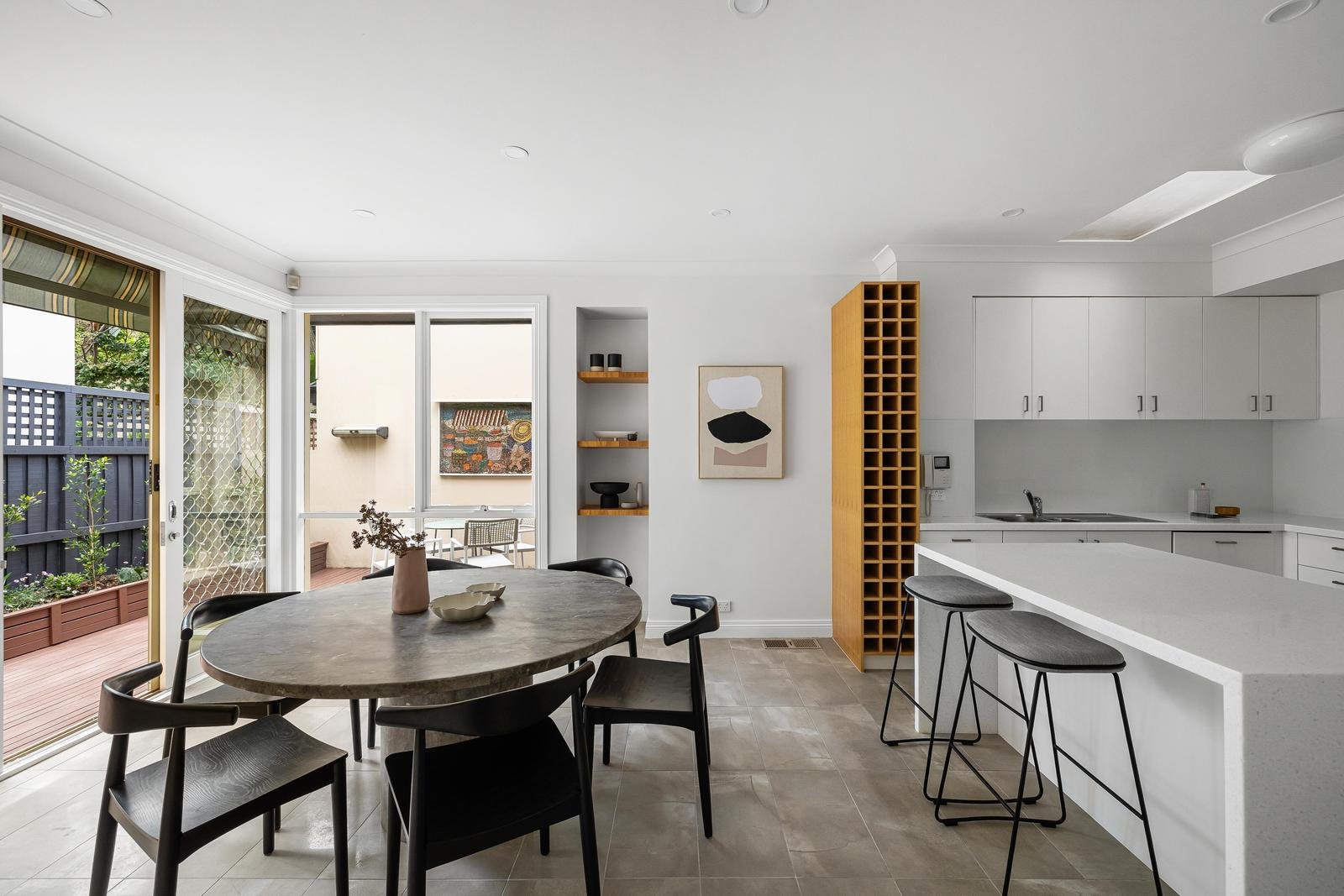 The kitchen is designed perfectly for entertaining, oriented towards the dining space and open deck, making for easy connection and flow. Bedrooms are seamlessly expanded by surrounding courtyards, inviting light and greenery into the rooms, while the bathroom has a balanced simplicity and clean, elegant finishes.