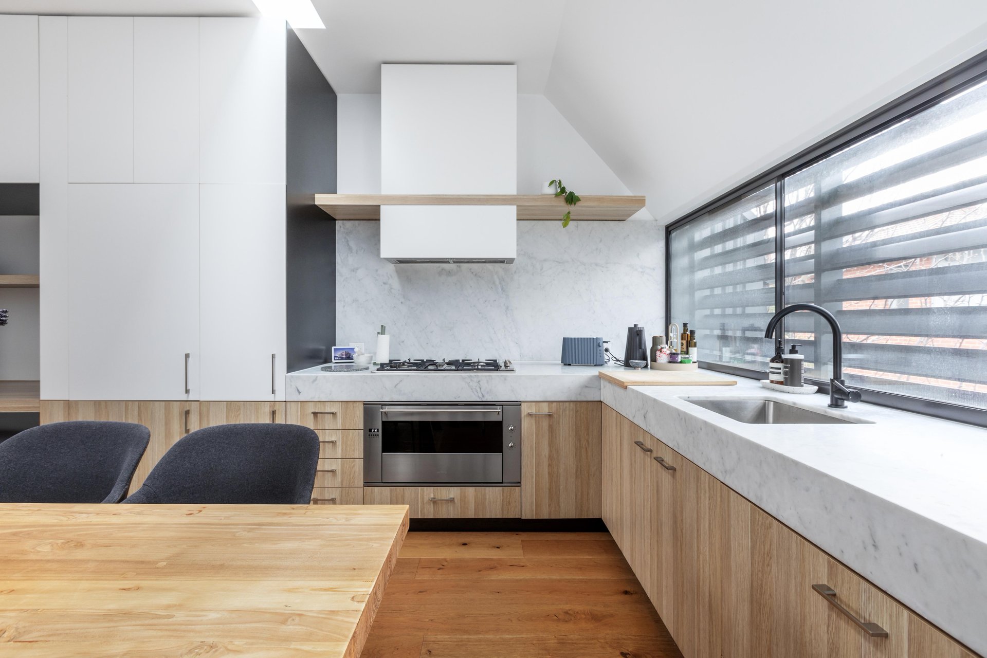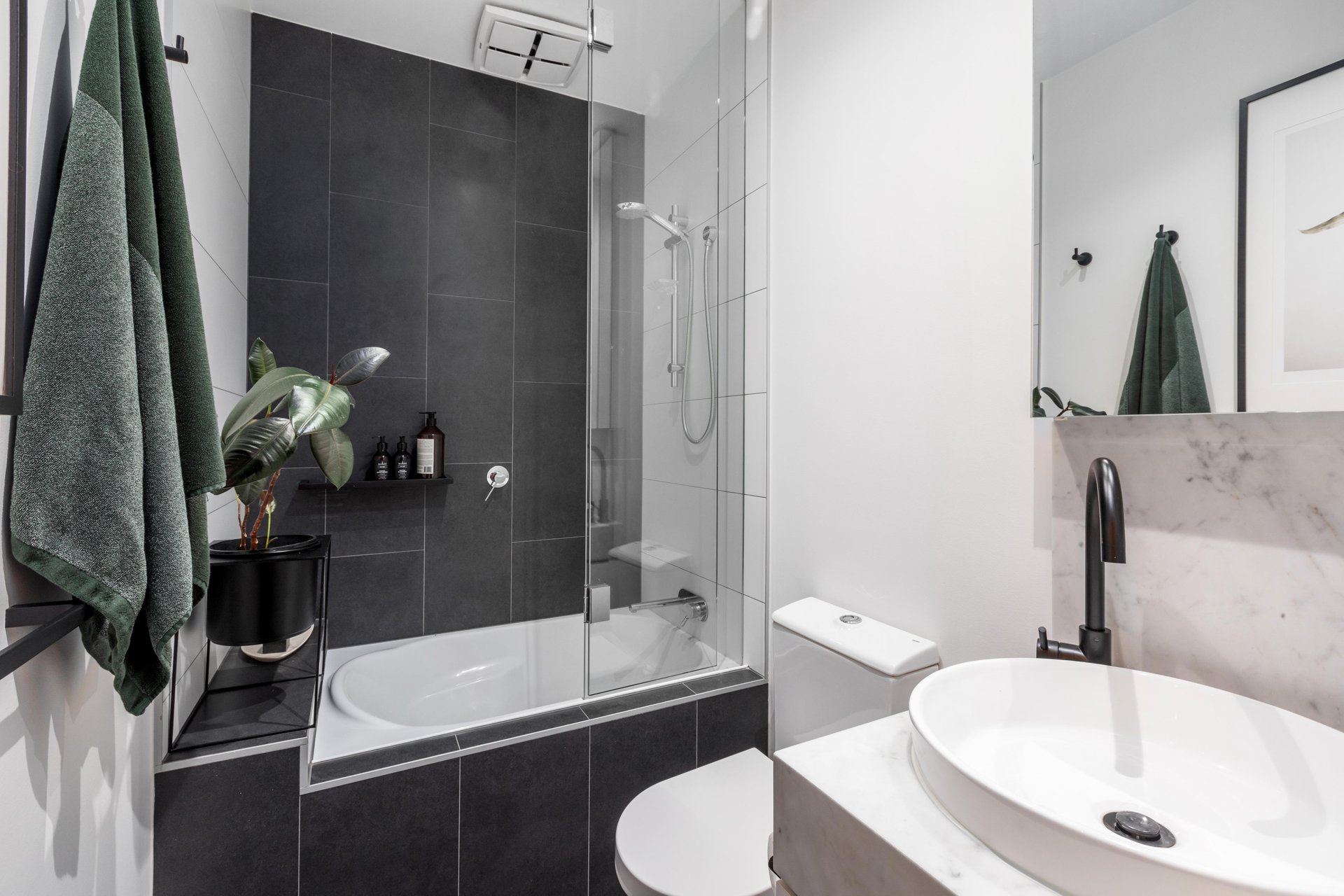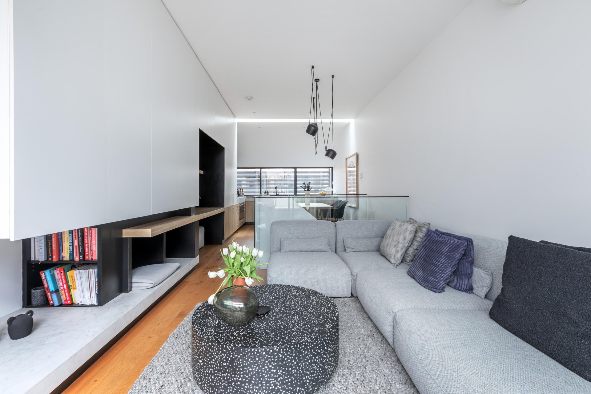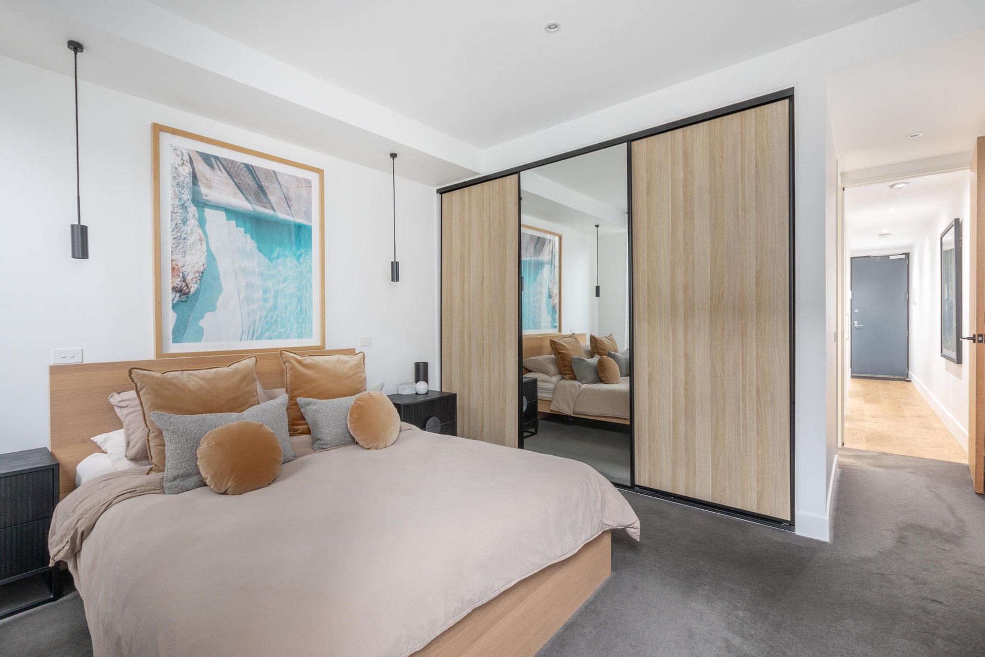 Warm timber, sculptural finishes, and thoughtful flow define this three-floor apartment—crowned with a private rooftop terrace and sweeping city skyline views. The kitchen—with its stone-wrapped bench, timber cabinetry, and seamless access to the deck—is both a beautiful design piece and highly functional. The open-plan living area is calm, minimal, and inviting, with integrated shelving and an inbuilt desk nook. Two serene bedrooms feature soft neutrals, sheer curtains, and built-in robes. The bathroom is sleek and restrained, with charcoal tiling, stone benchtop, and floating vanity. Sliding doors open to a sunny balcony, while the rooftop—timber-decked and city-facing—offers expansive room to lounge in the sun, host rooftop dinners, and enjoy panoramic views. This home is a thoughtfully designed retreat of texture, tone, and light. Enjoy a quiet street right near the action. Pick up coffee on High Street, walk to local parks, and explore Chapel Street’s dining, retail and nightlife. Trams and trains are within easy reach, as are arterial roads, giving you urban convenience—combined with peace and quiet.