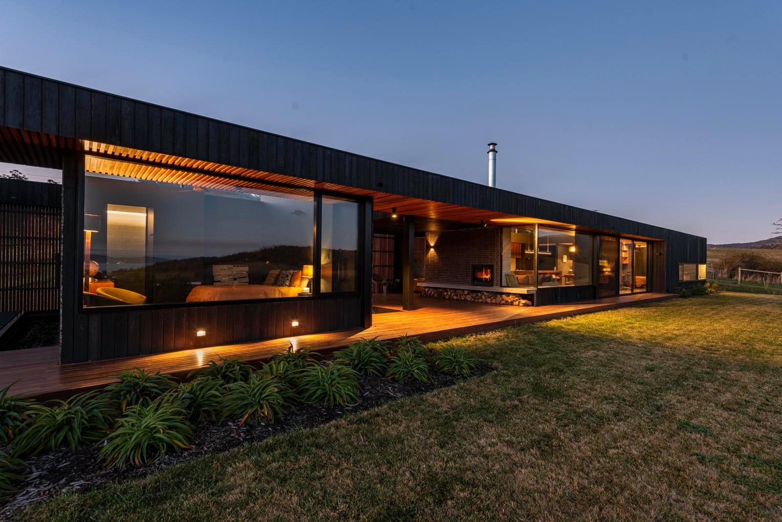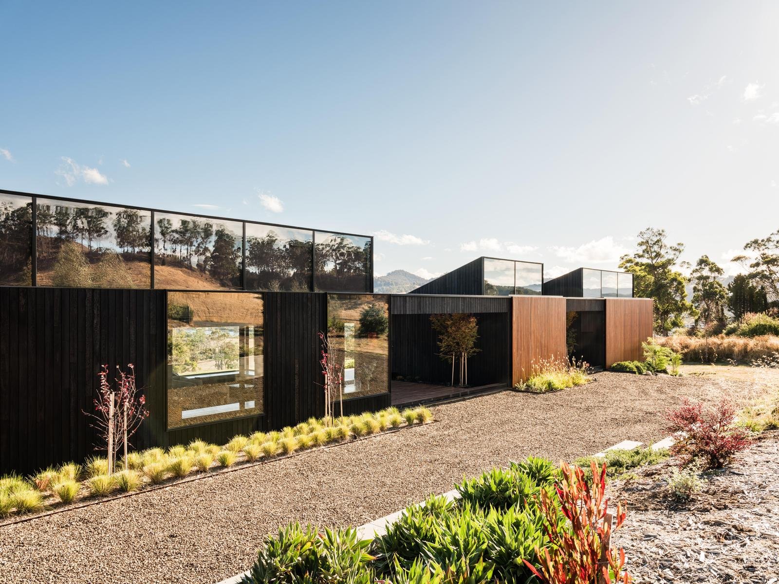 Designed by acclaimed architect Nathan Crump and crafted by Overland Builders, the residence is composed as a series of interconnected pavilions, each deliberately positioned to maximise outlook, privacy and connection to the natural surroundings. The exterior is clad in shou sugi ban spotted gum, lending depth, texture and understated drama, while native gardens soften the architecture and enhance the retreat-like atmosphere.