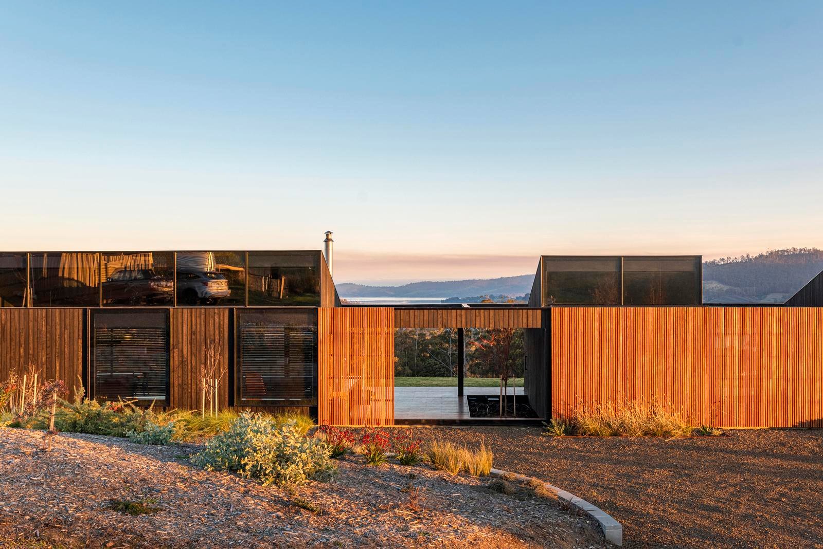 Suspended above rolling hills with an uninterrupted outlook across Port Cygnet, this architect-designed pavilion residence is a striking expression of contemporary design in harmony with its landscape. Elevated, private and beautifully resolved, the home captures expansive views and ever-changing light, creating a sense of calm that feels both immersive and refined.