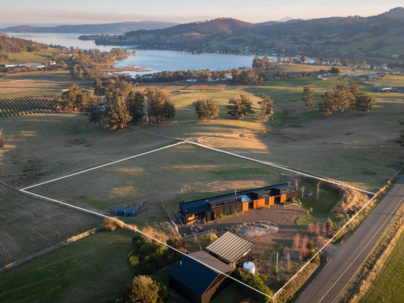 Set within the Huon Valley’s celebrated fruit-growing region and moments from two award-winning wineries, the property enjoys peaceful seclusion with everyday convenience. The cafés, shops and school of Cygnet township are just three kilometres away, while Hobart’s CBD is easily reached in under fifty minutes.