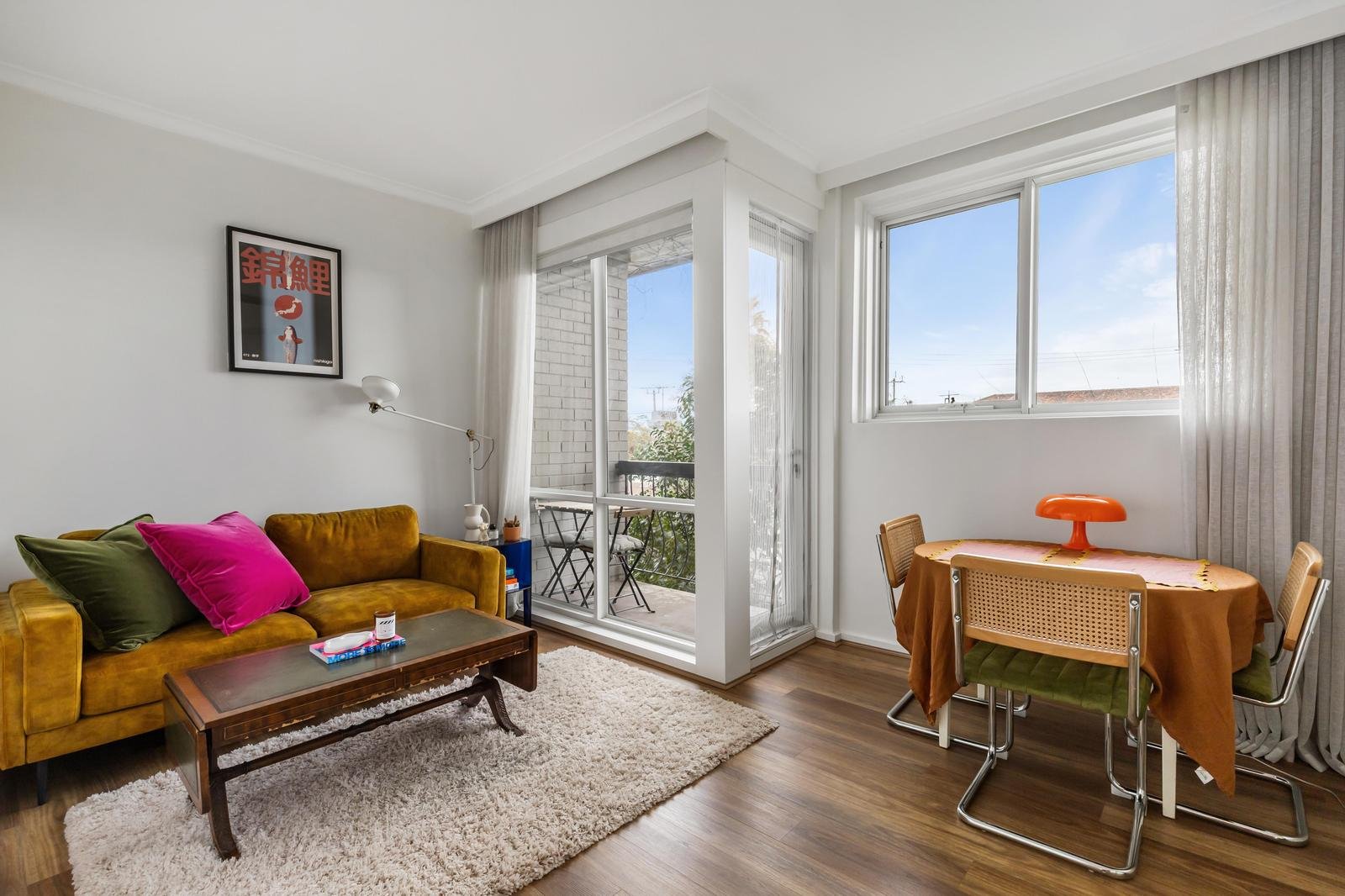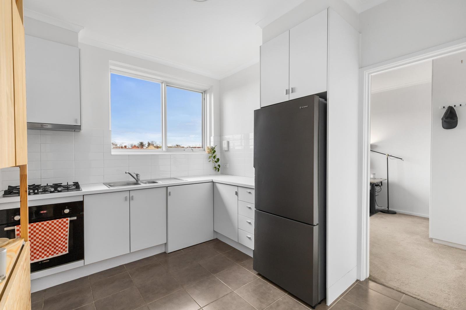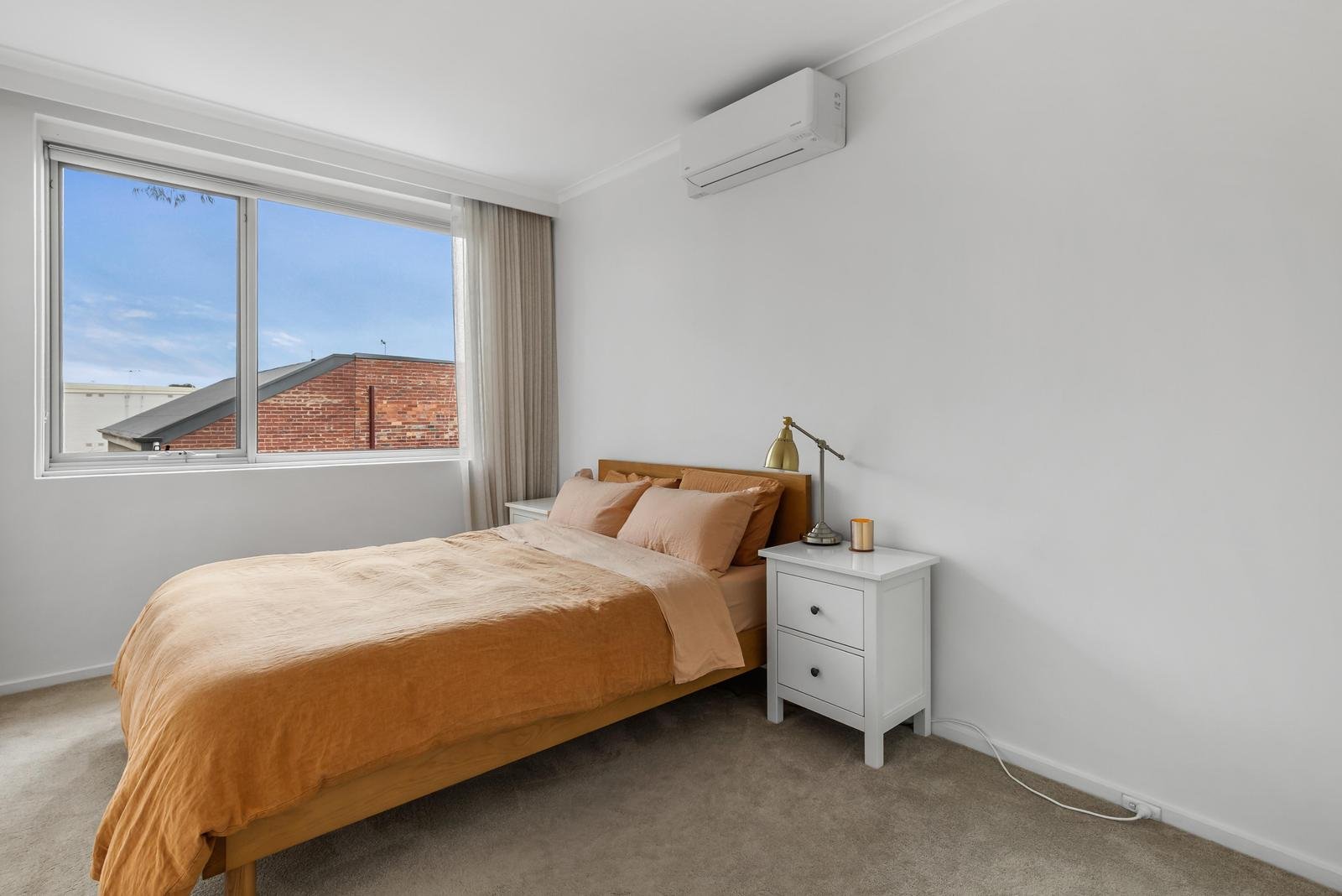 Positioned on the top floor at the rear of a well-maintained boutique complex, this bright two-bedroom apartment presents an excellent opportunity for first home buyers, young professionals, or savvy investors. The generous living and dining area flows seamlessly onto a private balcony offering leafy outlooks, while the warm timber flooring creates a welcoming atmosphere. A well-appointed kitchen includes quality Bosch appliances with gas cooking, convenient laundry facilities and ample storage, making it functional for everyday living. Two generously sized bedrooms featuring carpet throughout are fitted with built-in robes and boast an abundance of natural light, while the functional bathroom includes a shower over bath. Additional features include split-system heating and cooling, off-street parking on title and secure intercom entry.
