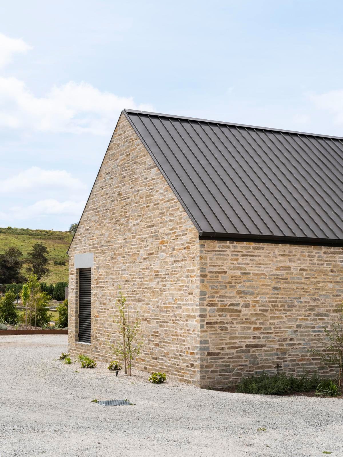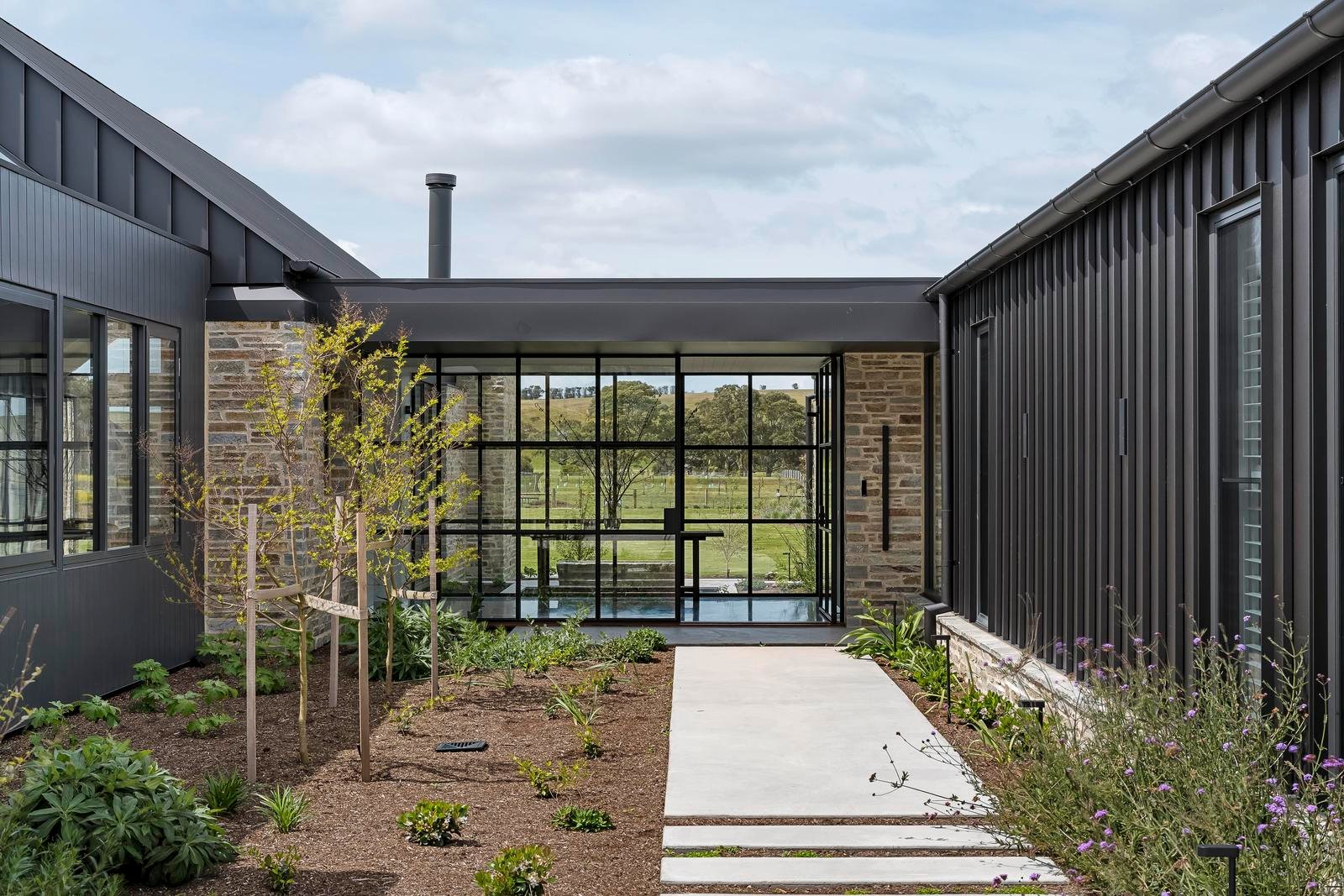 * New Zealand-style farmhouse wrapped in exquisite materiality; steel, stone, and glass complemented by the stunning landscape