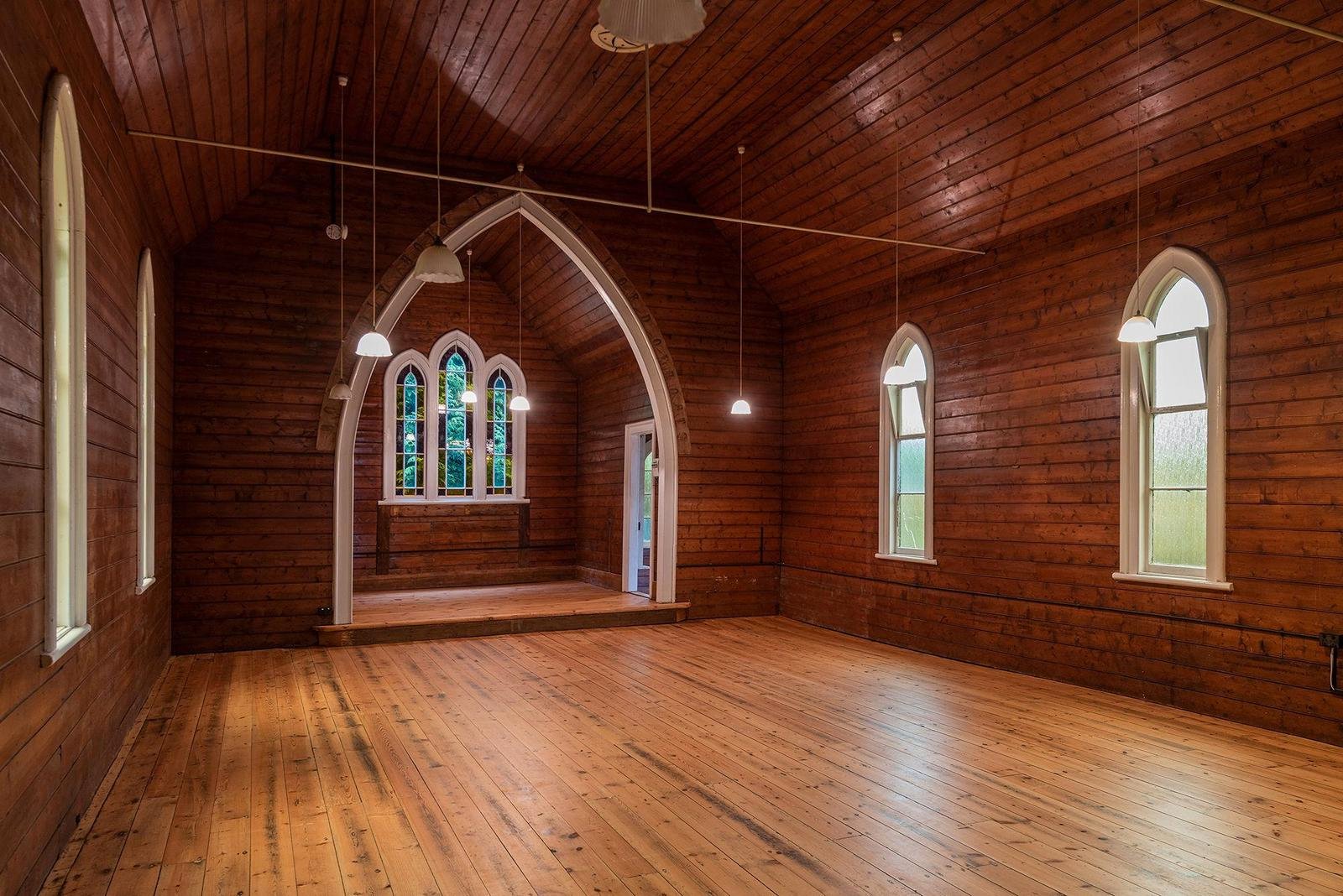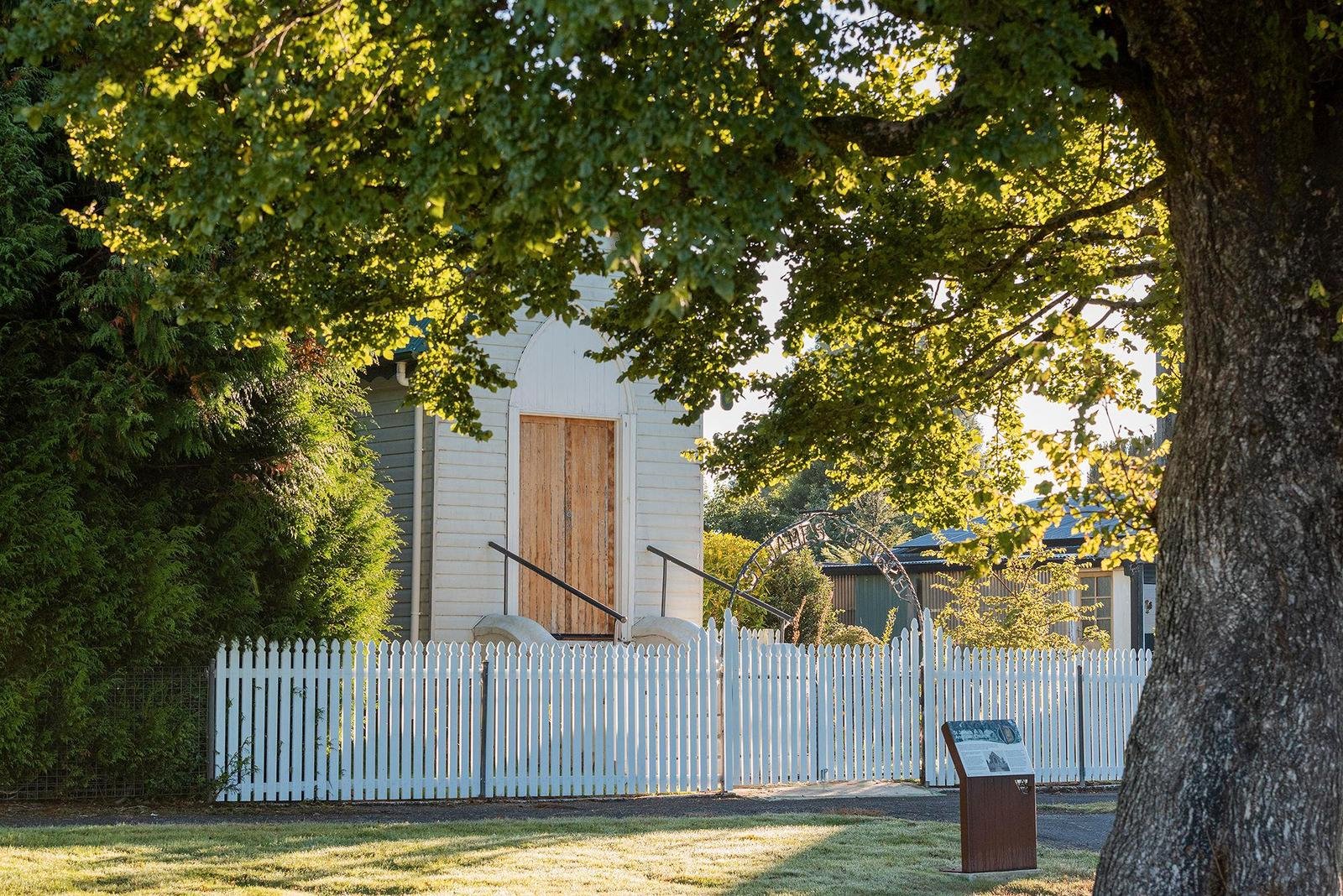 The generous grounds further enhance the sense of space and privacy. Framed by a magnificent blackwood hedge believed to be more than one hundred years old, the property feels almost like its own small park within the township. A traditional white picket fence, thoughtfully installed in recent years, echoes the historic boundary that once framed the church.