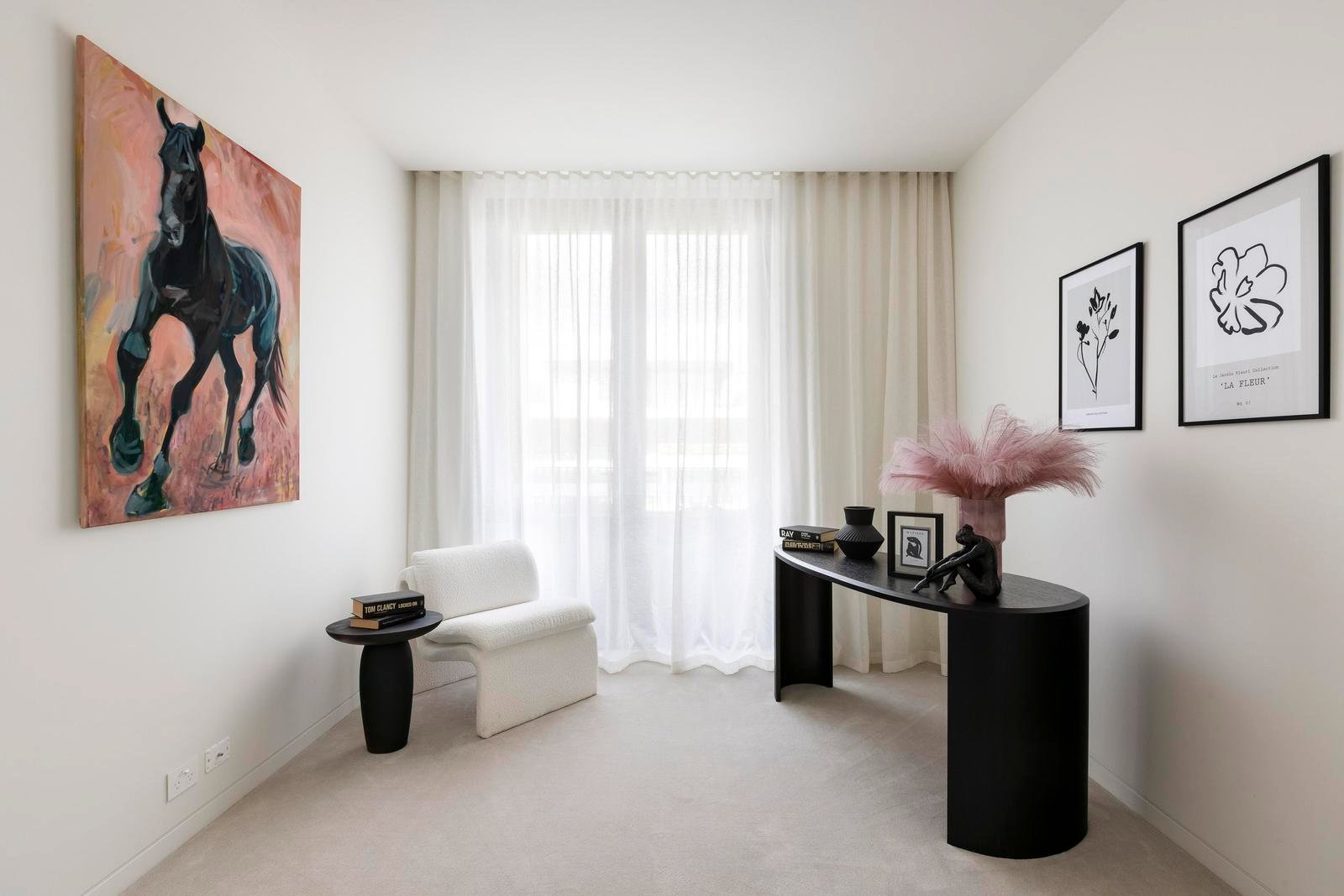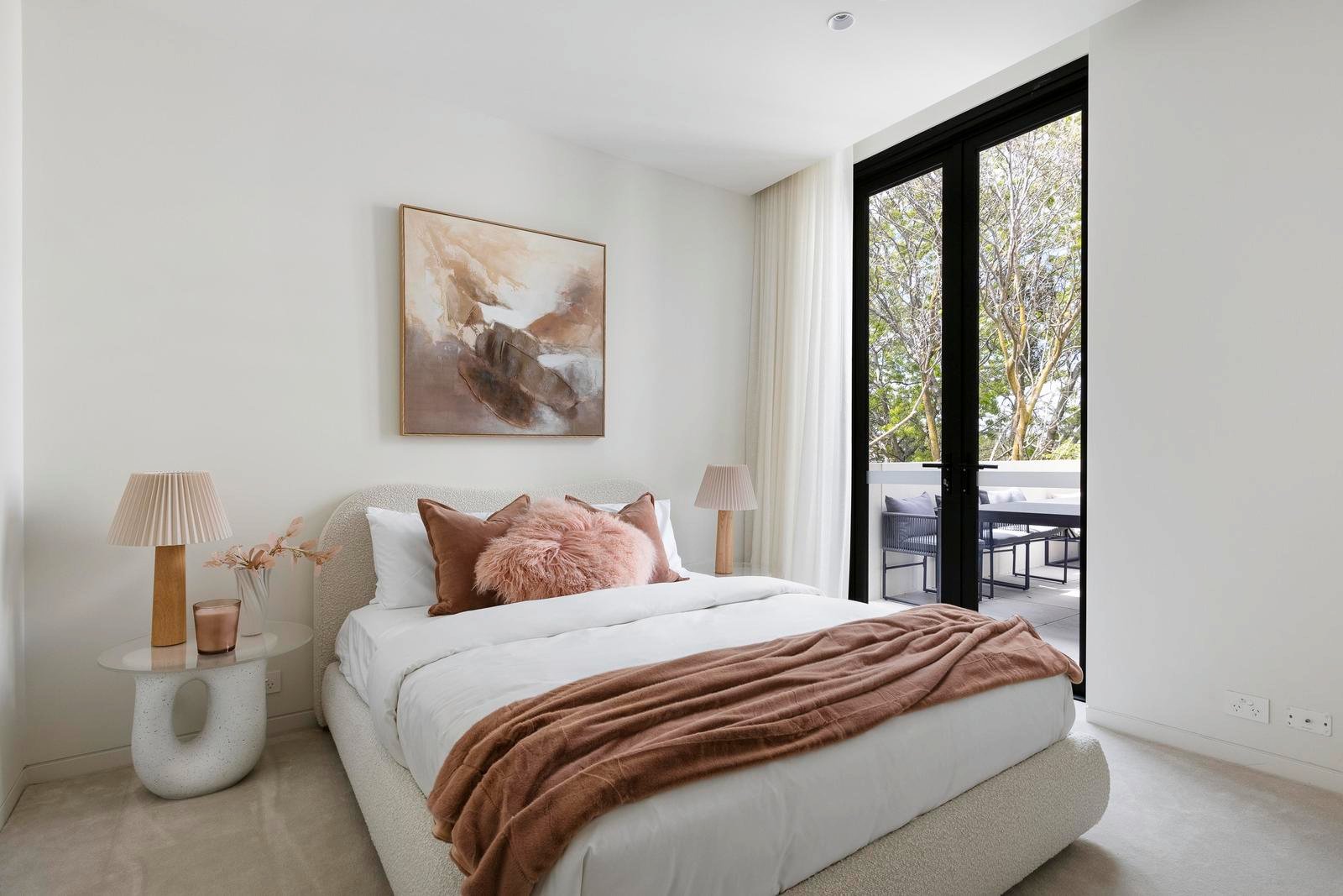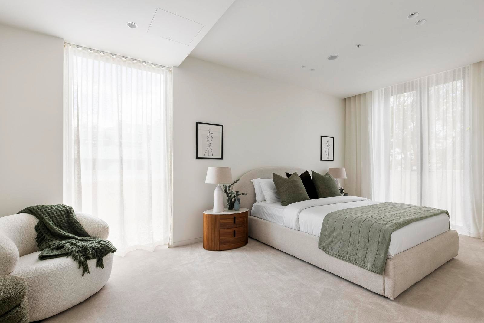 Three serene bedrooms include a main suite with a walk-in robe and an ensuite of grand proportions. The second bedroom offers its own walk-in robe, while the third provides versatility as a guest room, study or retreat.