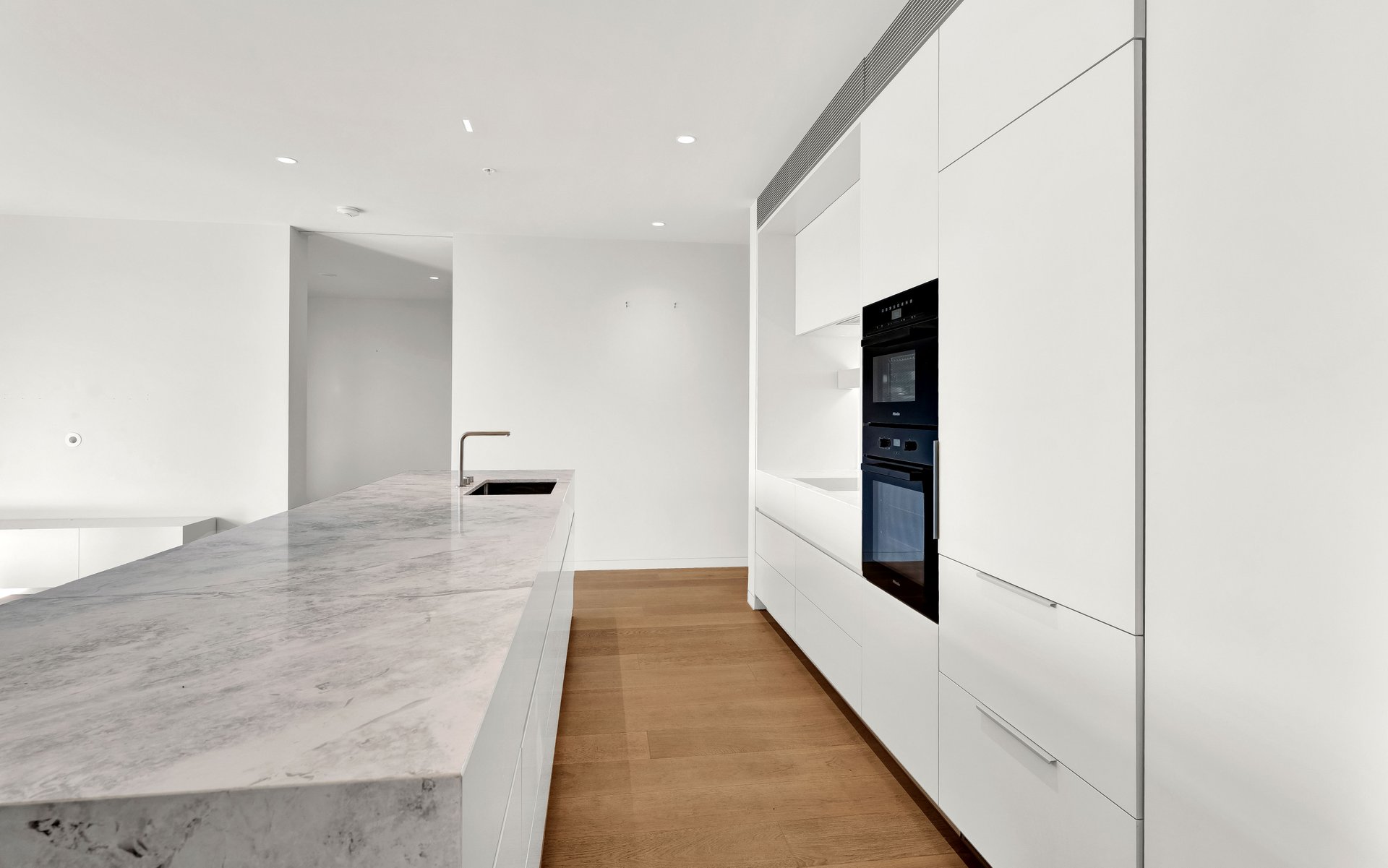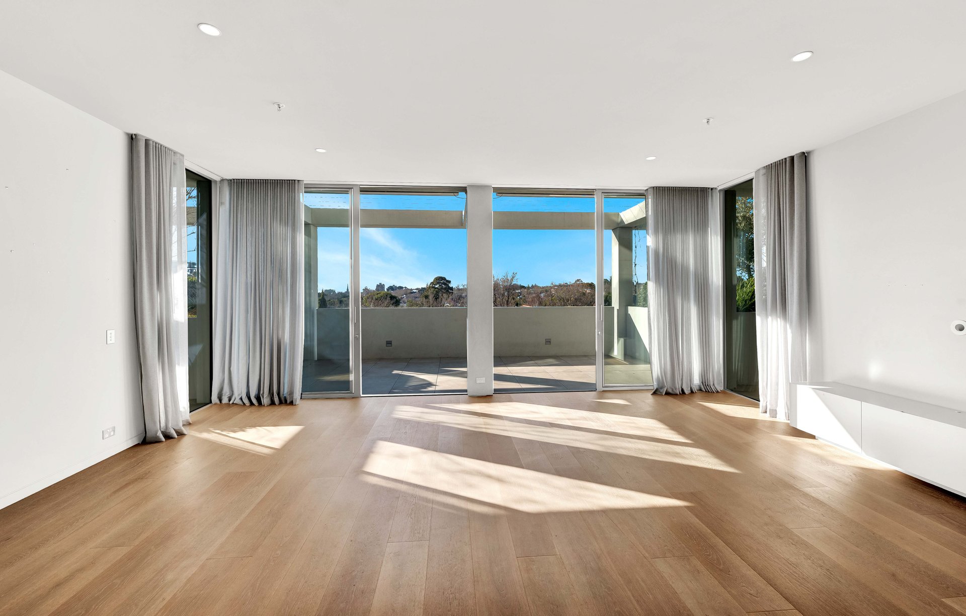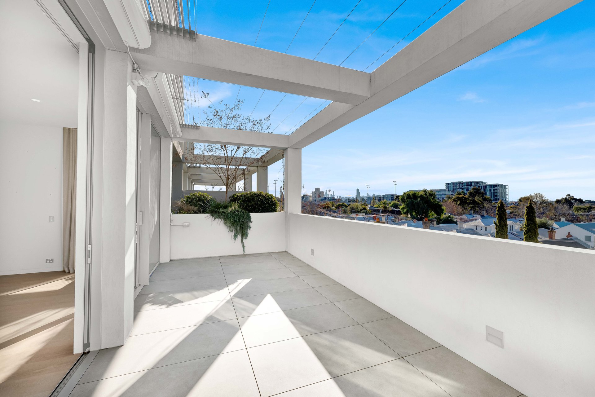Exceptional architectural and interior design by Carr Group has delivered an impeccable contemporary haven in the heart of Armadale’s stylish shopping and dining precinct, with Leaf village grocer on the ground floor. Secure, stylish and private, take the lift to the second floor where approximately 145sqm of north facing internal living space will impress and inspire. High ceilings and vast sliding doors are accompanied by a tranquil panorama encompassing Armadale’s heritage rooftops and cityscape vistas. Two established gardens and three distinct alfresco living spaces create a memorable space to entertain friends and enjoy quiet outdoor connection, with retractable awnings adding flexibility for year round enjoyment. European oak floors flow through the open plan living room where a kitchen is beautifully appointed with exquisite natural stone benchtops, Miele appointments including a dishwasher, oven, steam oven and induction hotplates, and a Liebherr fridge with ice maker. A fabulous scullery incorporates a full height Liebherr wine fridge, appliance cupboard, laundry and butler’s pantry. Both spacious bedrooms feature extensive built in robes, ensuites and access to private balconies; the luxury principal bedroom comes with a freestanding bath. Incredible storage is cleverly placed throughout, with double glazing, zoned air conditioning and a powder room, as well as automatic garden irrigation, keyless entry, video intercom, two car parks, provision for fast EV charging and two storage cages completing this exciting opportunity, located in one of Armadale’s most esteemed locales.