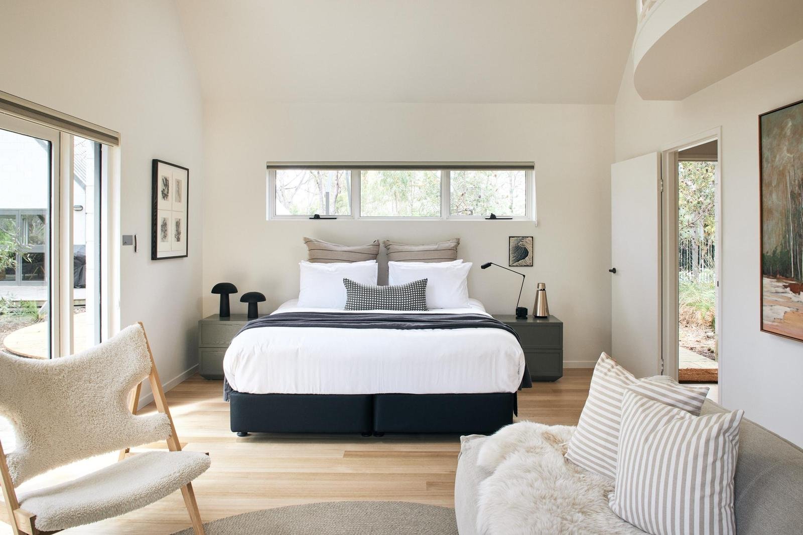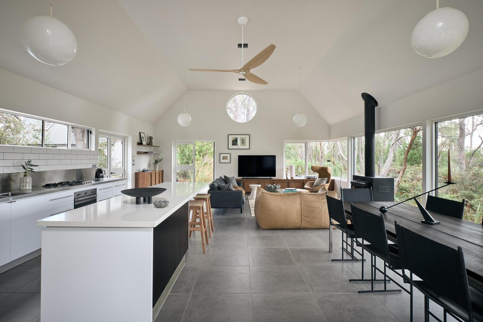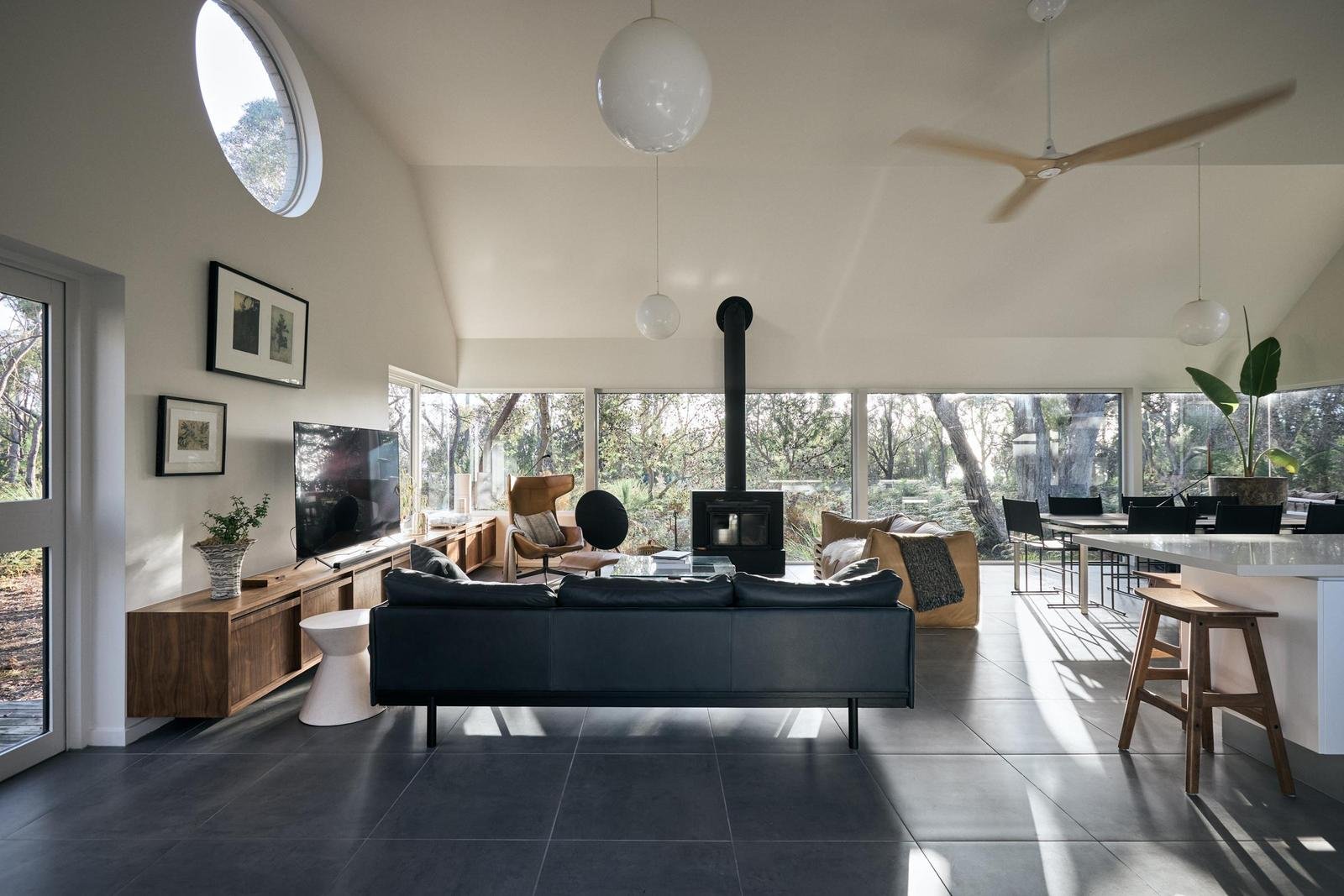 Set amid more than nine acres of gently elevated coastal land, 24 Manning Drive, Orford is a place where design and nature meet in perfect harmony. Conceived as a private retreat, the home is encircled by native bushland and enjoys soft ocean glimpses that shift with the light. The setting is peaceful and secluded, yet just minutes from Orford’s town centre and a leisurely stroll from the turquoise waters of Spring Beach.