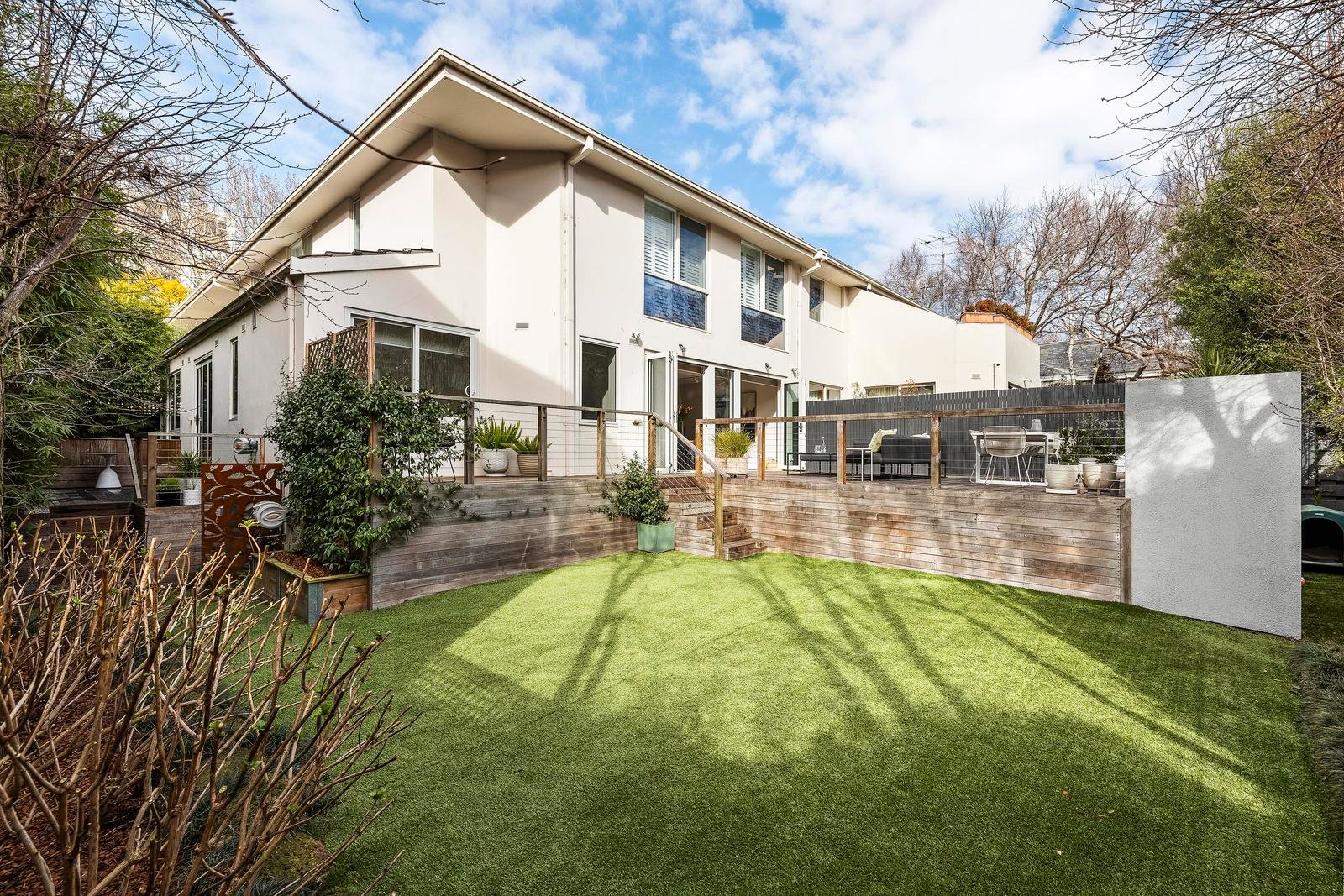 Framed by grand plane trees, unit 3 of 9 Woorigoleen Road sits on spacious grounds with a sweeping lawn and large wrap-around timber deck – the perfect place for outdoor lovers, families, and entertainers.