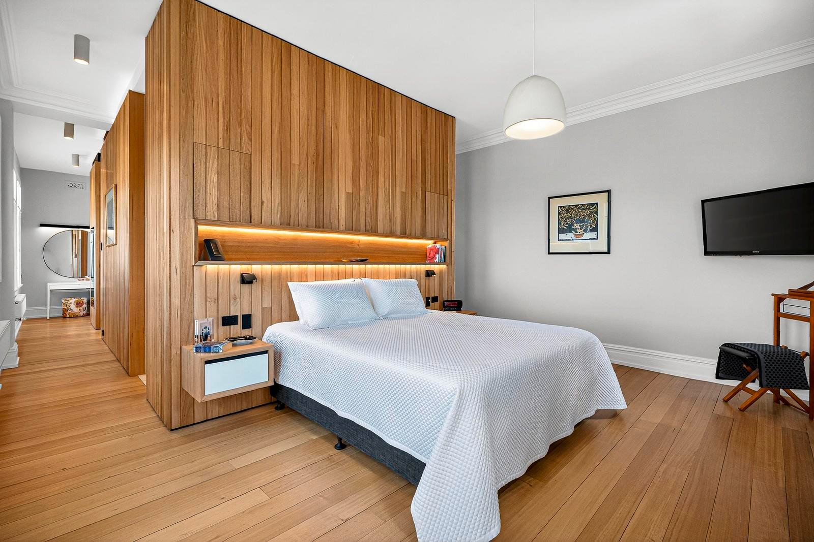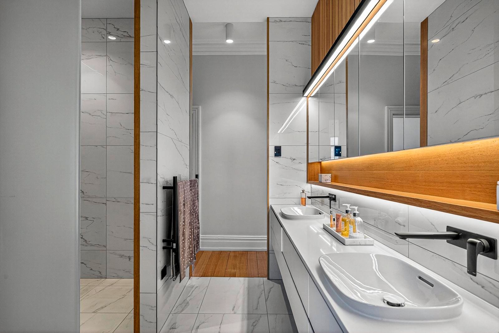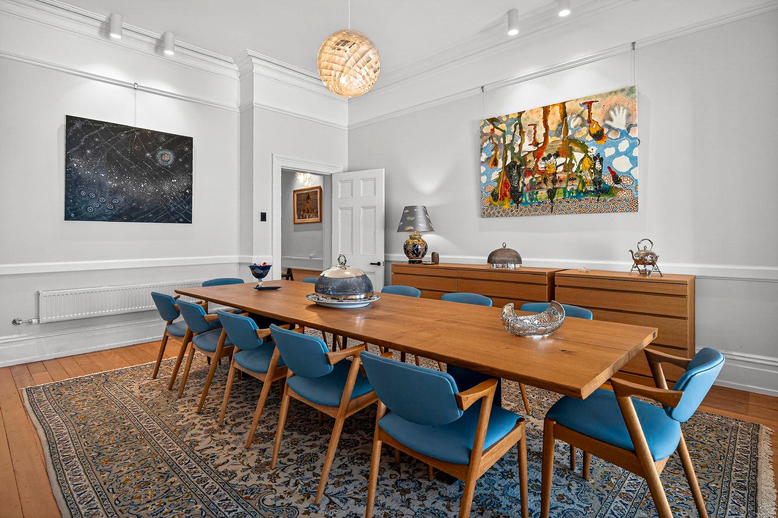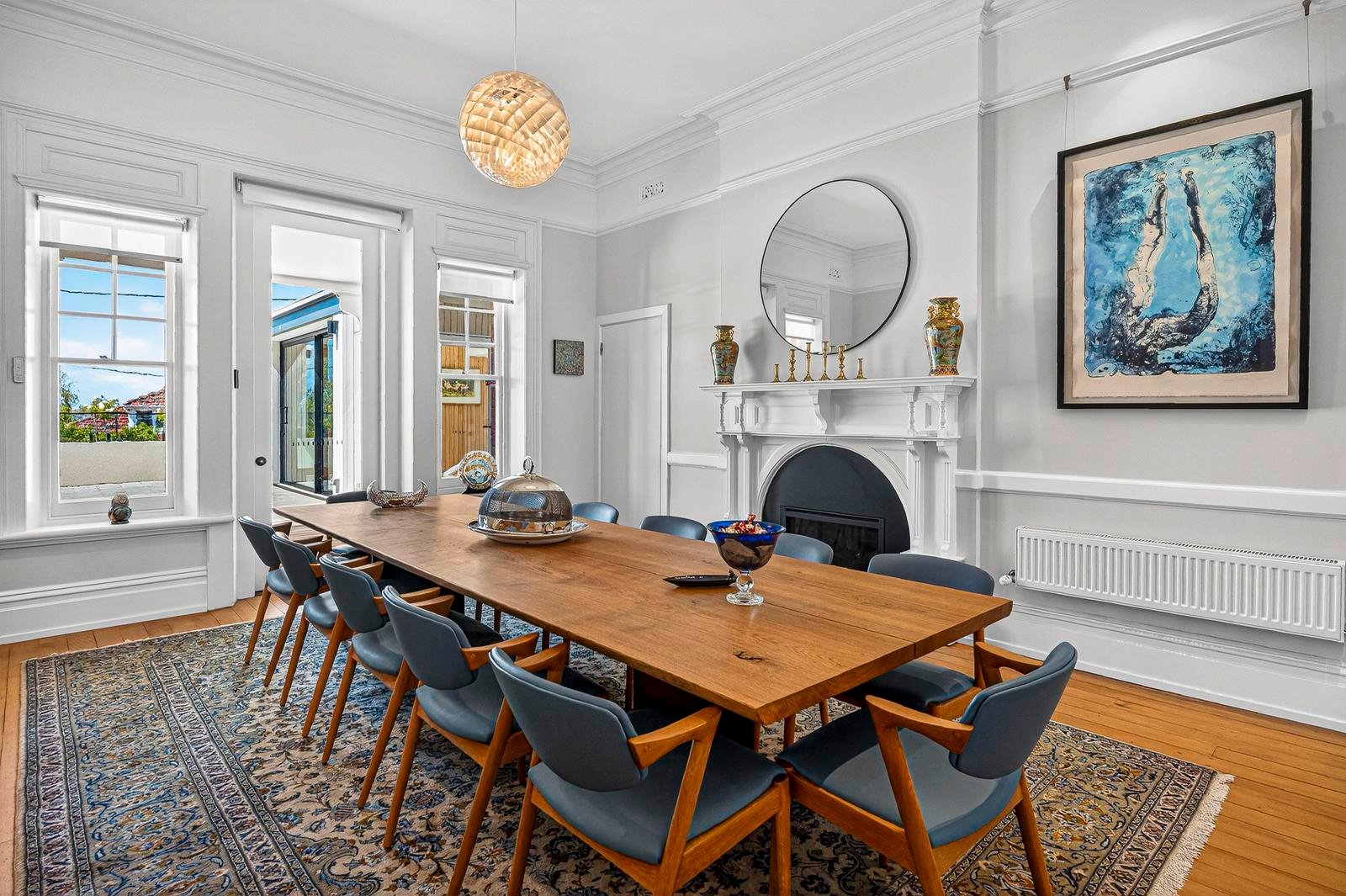 Under current ownership, this stately and generously proportioned period residence has undergone a complete transformation. Designed by architect Kate Symons of Studio Ilk, the renovation honours the grandeur of the original home while introducing a thoughtful contemporary extension. The interiors balance formal and informal living with ease, featuring magnificent high ceilings with ornate plasterwork, polished hardwood floors, a calm neutral palette ideal for significant artworks, hydronic gas heating, and multiple gas fireplaces to ensure comfort throughout the year. The generous proportions and seamless flow between spaces create an exceptional setting for entertaining, whether hosting intimate dinners, large gatherings, or relaxed family celebrations.