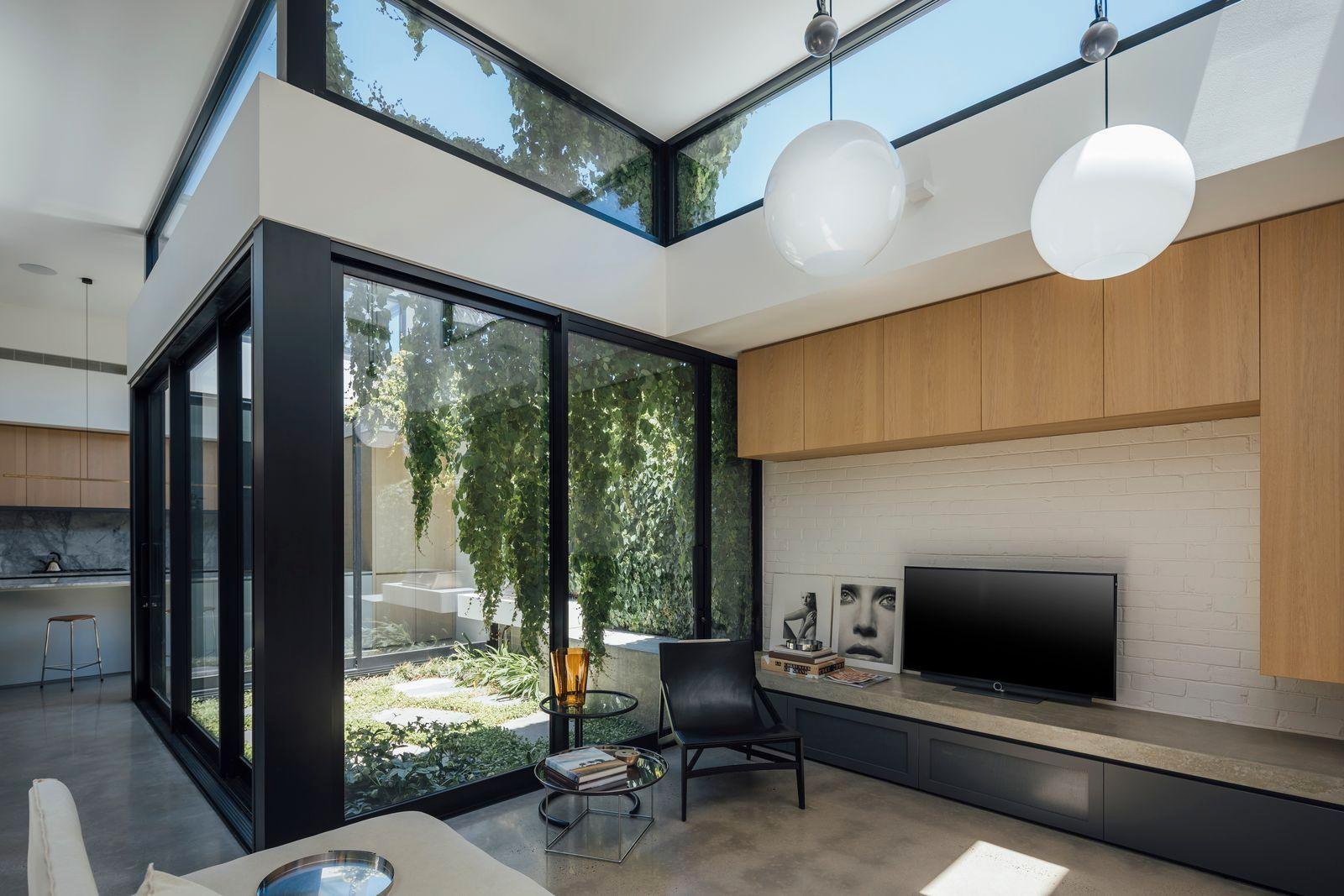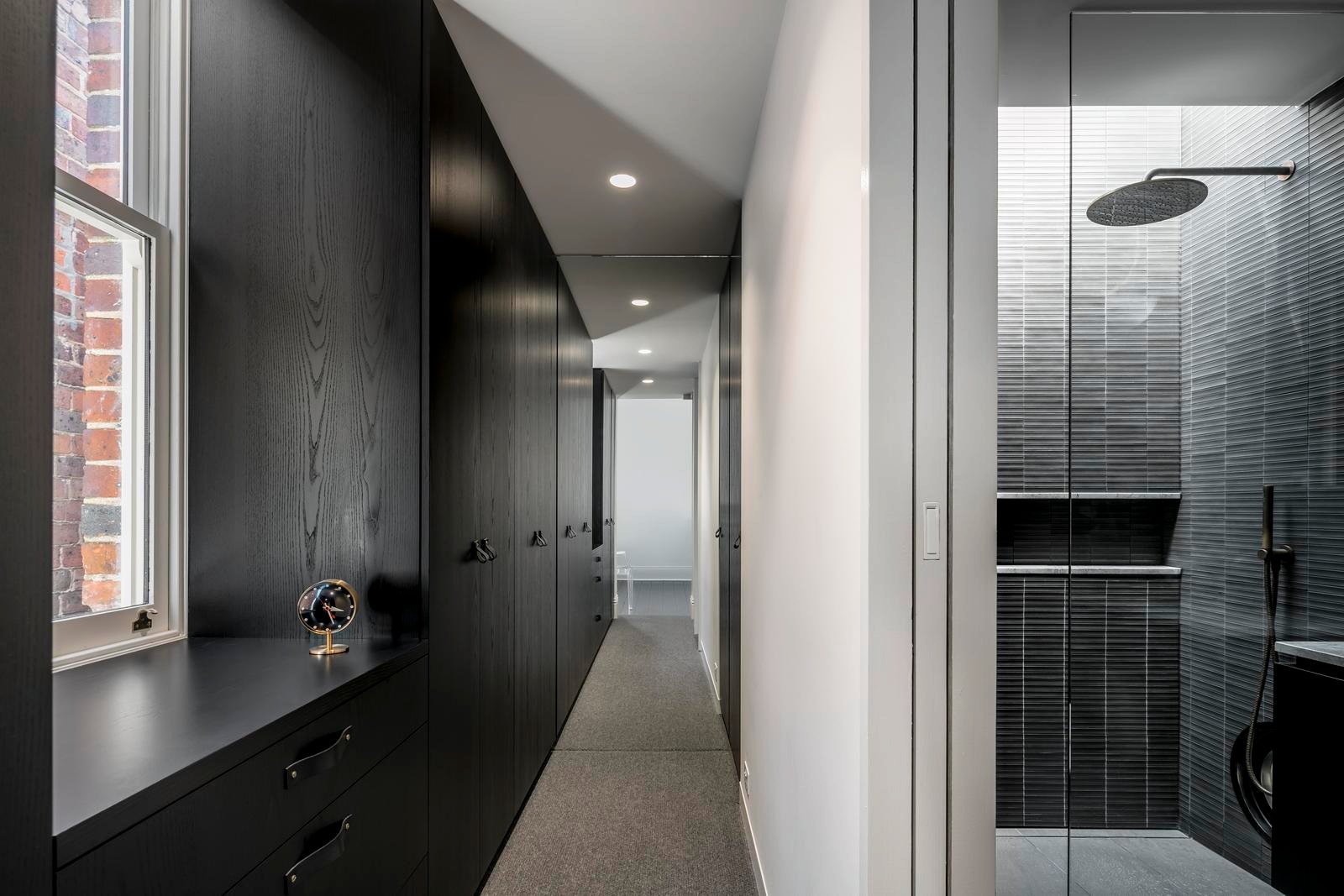 Behind a lush garden and Hawthorn brick façade, original features including 13ft ceilings, Baltic pine floors and open fireplaces are paired with polished concrete, exposed brickwork, clerestory glazing and premium finishes. Rather than a traditional rear extension, living spaces are interwoven around three private landscaped courtyards, flooding the home with natural light and creating a seamless indoor–outdoor connection.