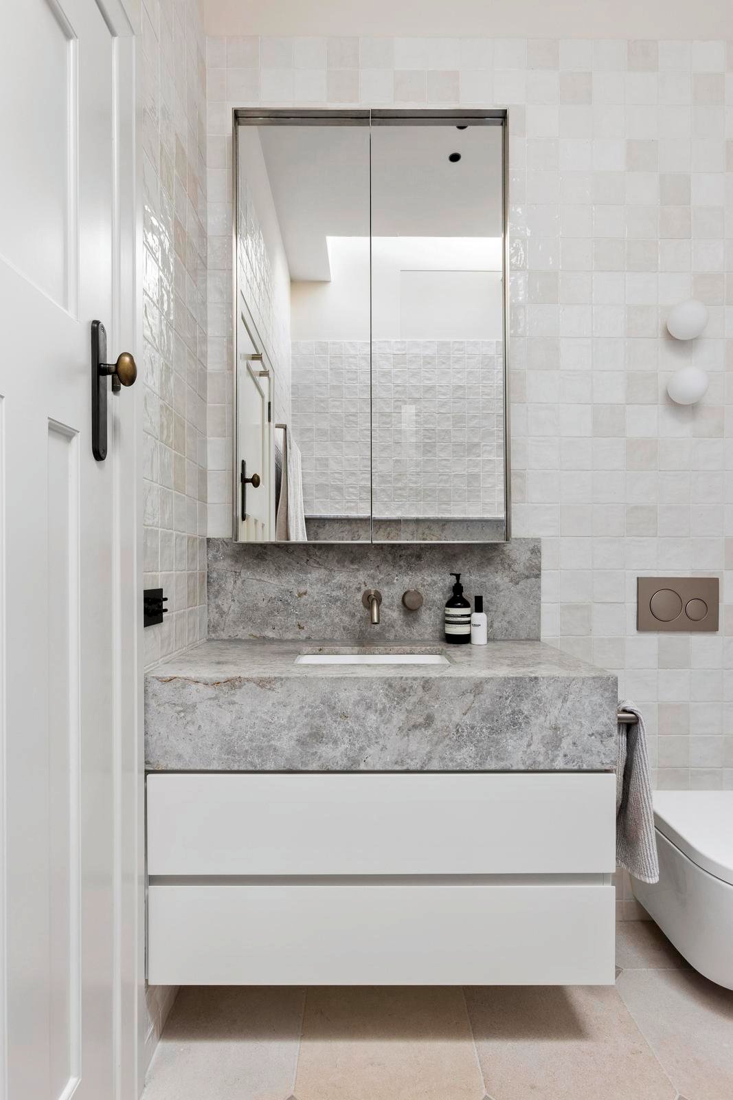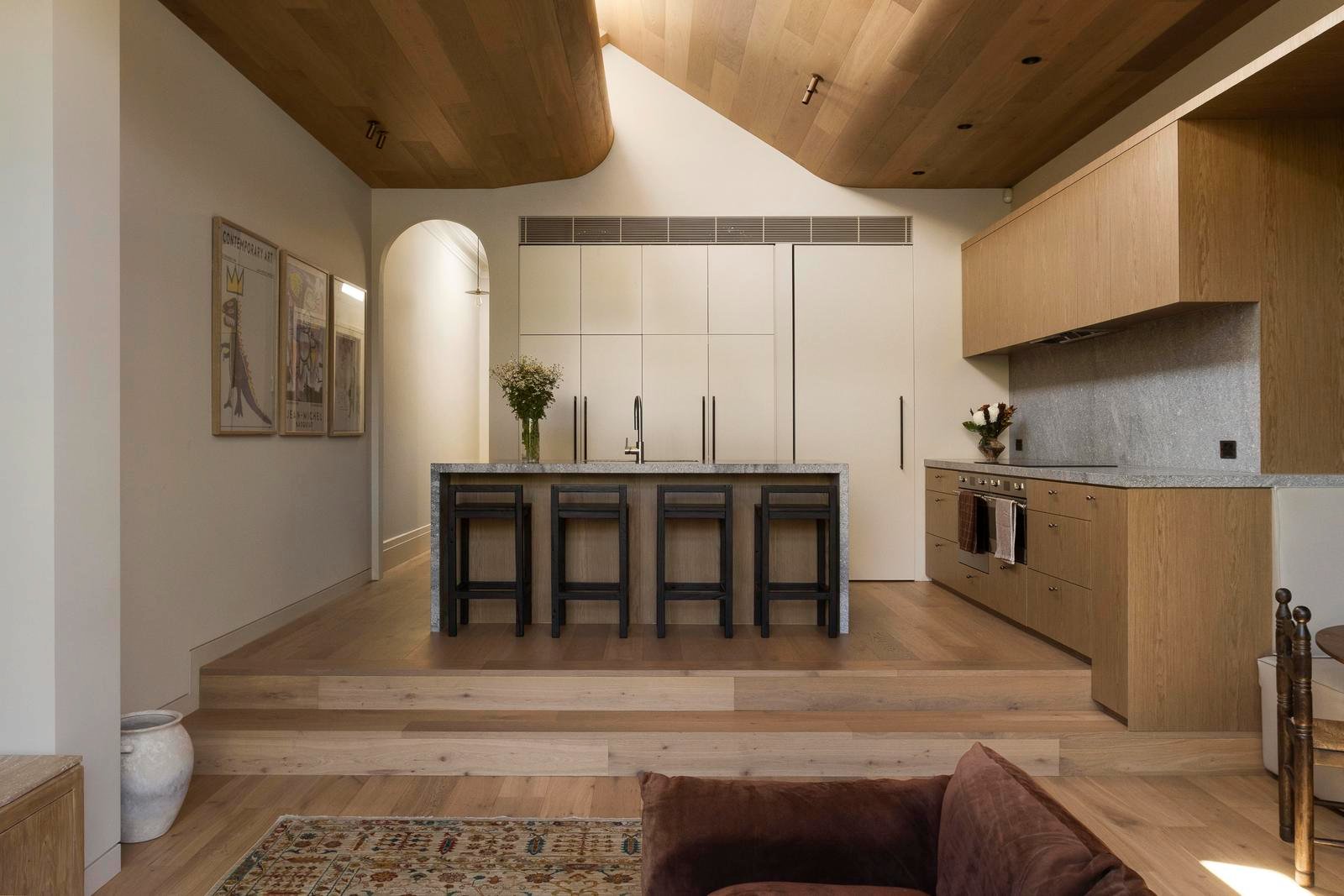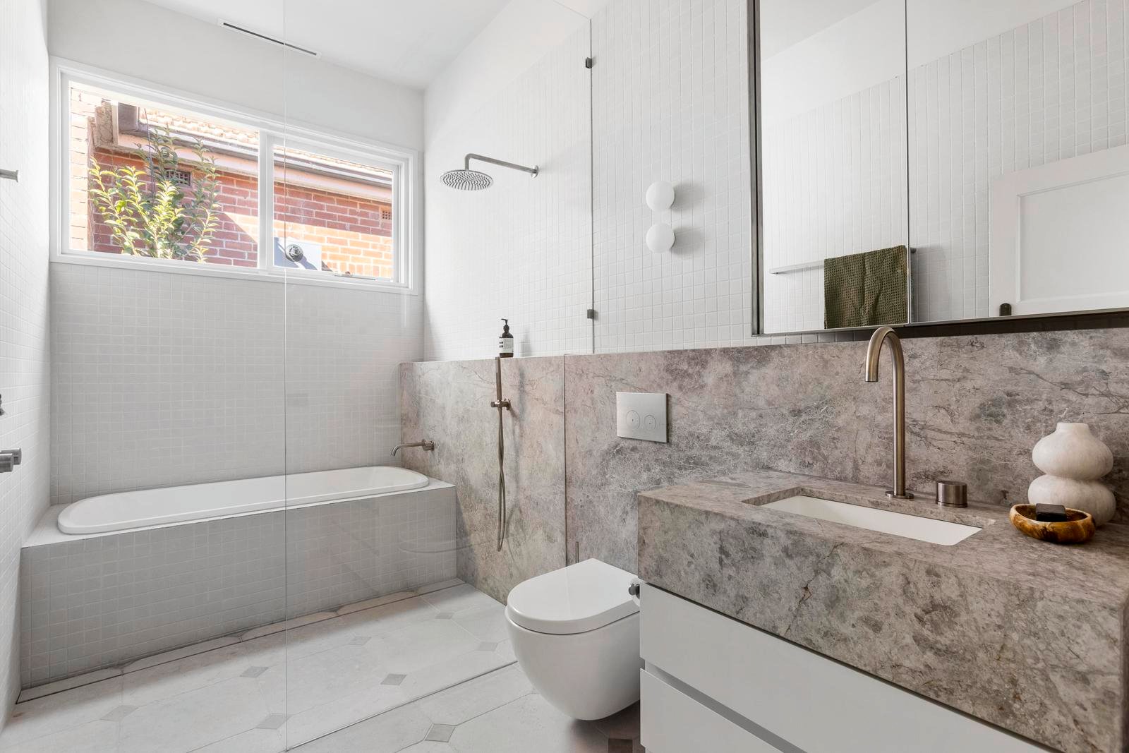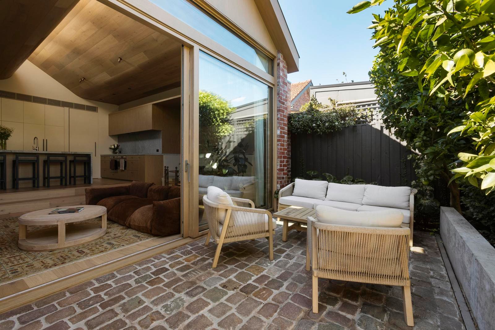 The traditional appeal of its period image and the exceptional elegance of its renovated spaces by Studio Kennon reflect the success with which this solid brick Edwardian has moved with the times in a location that remains similarly desirable and in demand. Three bedrooms and two superbly appointed bathrooms featuring Japanese mosaic tiles, natural limestone vanities and sub-heated floors strike a brilliant balance of classical and contemporary – a theme that’s emphasised and amplified by the living/dining domain’s open-plan kitchen where natural granite benches, an integrated French door fridge and Smeg appliances including a 900mm cooktop and integrated dishwasher convey peerless quality. A dramatic, dynamic raked timber ceiling brings bright natural northern light to these fabulous spaces before a courtyard backdrop contributes immediate alfresco allure enhanced by a north-westerly aspect and reclaimed Eco Belgian cobblestones. Premium finishes with a focus on natural materials, hydronically heated floors, Bronze EST lighting, Italian joinery hardware, architectural flair and a clear focus on excellence enhance an Edwardian that’s become the best, most vibrant version of itself.