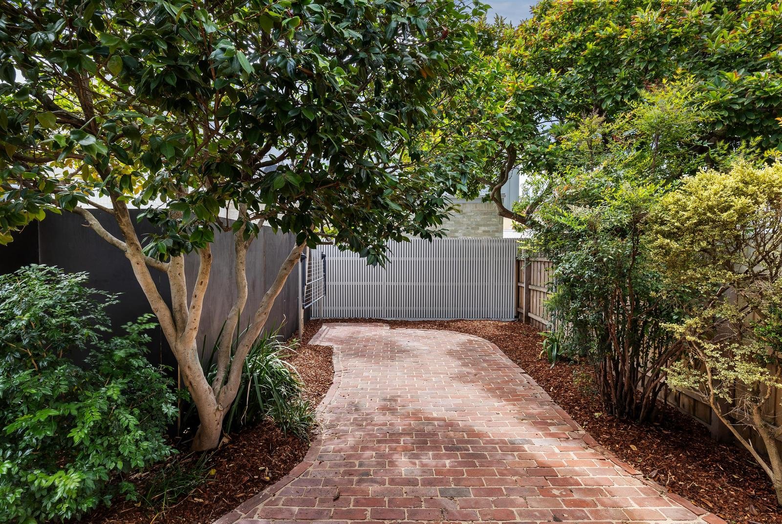 A double bedroom and bathroom add downstairs user-friendliness to a format featuring two upstairs bedrooms, each with built-in robes, both enjoying direct access to a central bathroom that’s fully tiled and impeccably appointed. Equally appealing outdoors, the brick paved backdrop delivers alfresco privacy, pleasing leafiness and low-maintenance ease.