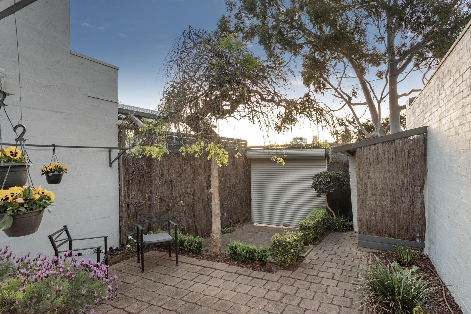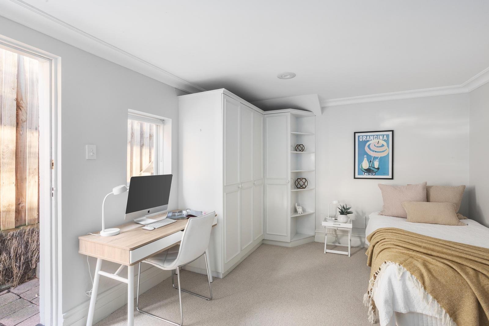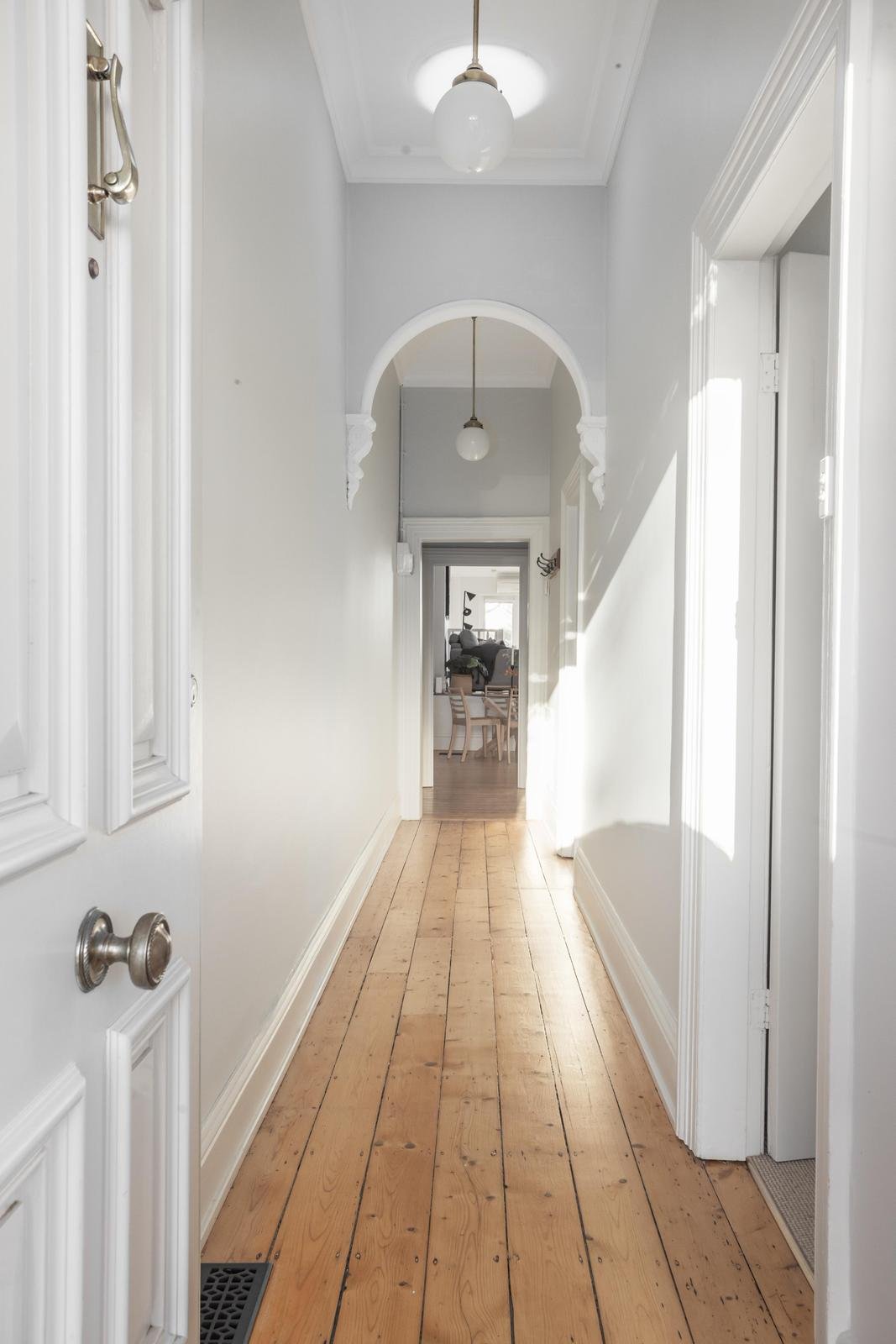 Behind its lacework façade and picket fence, this beautiful Victorian reveals an interior defined by light, proportion and thoughtful contemporary upgrades. High ceilings, polished timber floors and a graceful arched hallway set an elegant foundation, balancing period charm with a sense of calm and simplicity. The bedrooms are serene and inviting, filtered with soft light through plantation shutters, while the bathroom brings a crisp, modern contrast with white tiling and subtle window detailing.