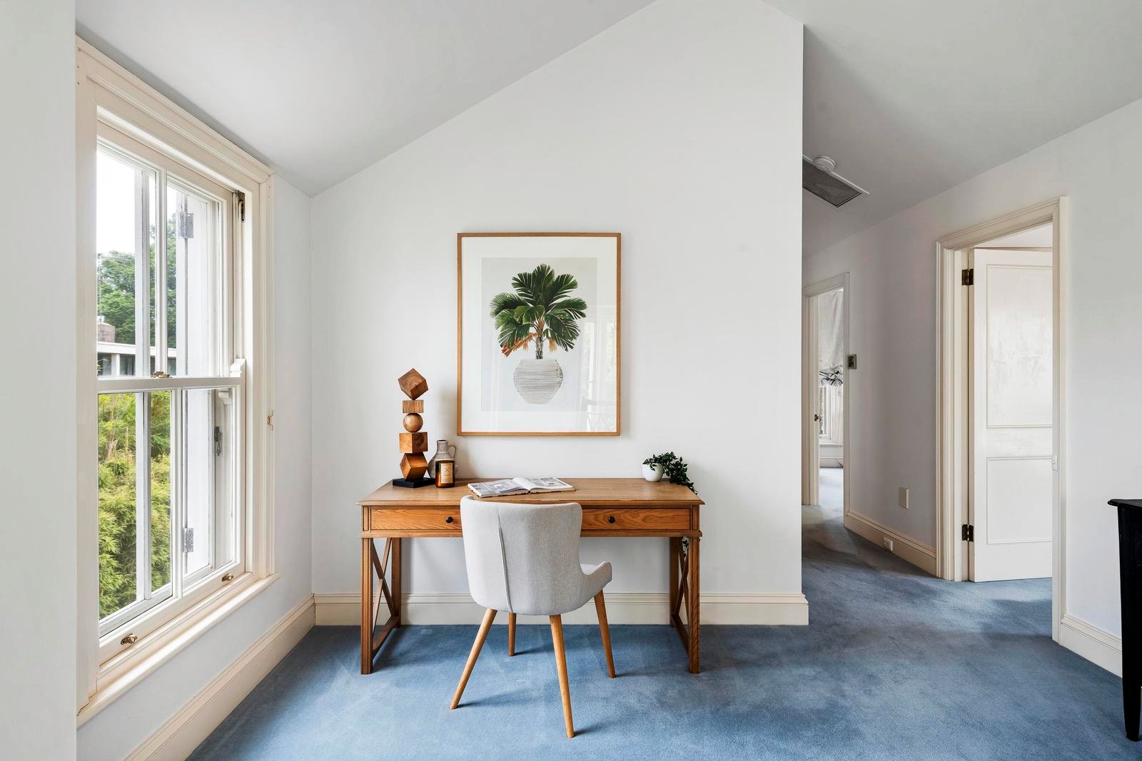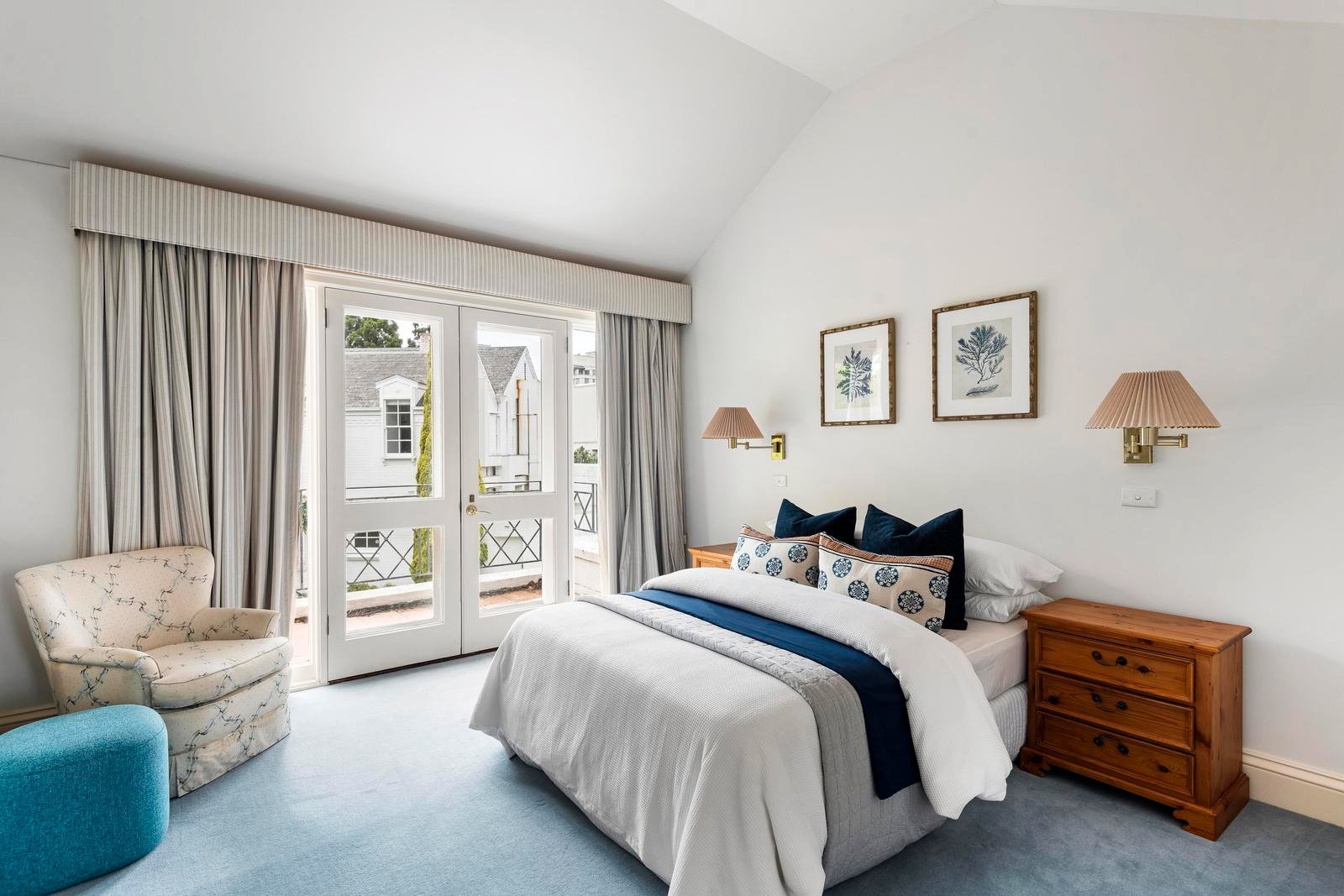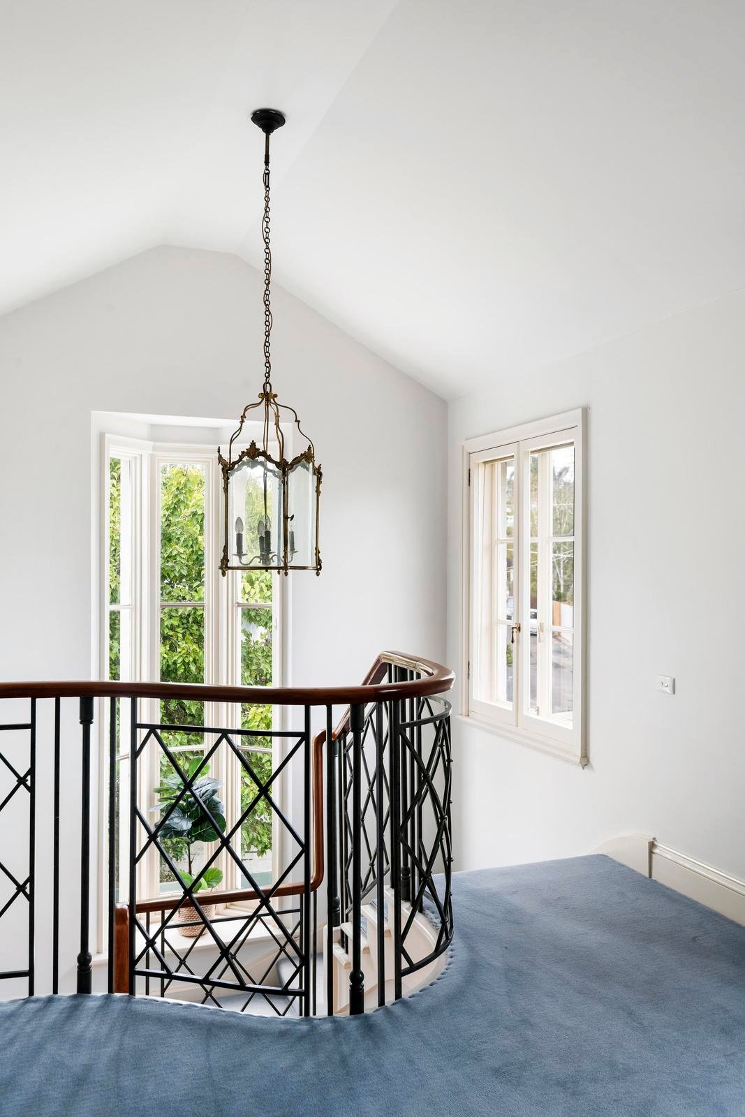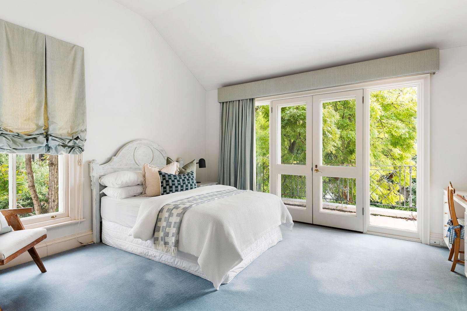 Upstairs, a sweeping staircase leads to two graceful bedrooms, each with built-in robes and a prized northerly aspect. Both open to a wide shared balcony, capturing sunlight and treetop vistas. A spacious landing offers flexibility as a retreat, library or study, while a central family bathroom with separate toilet completes the upper level.