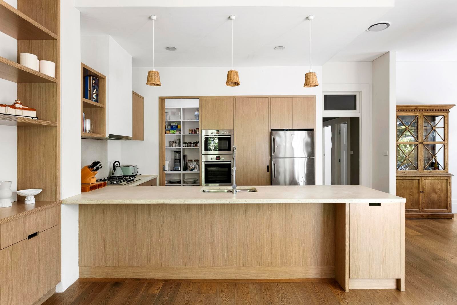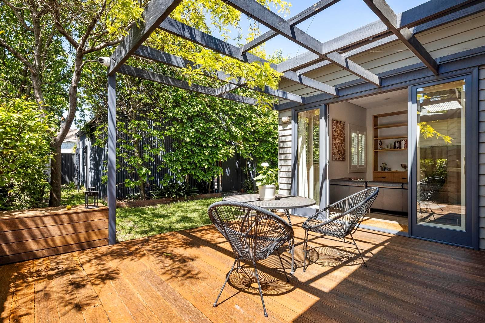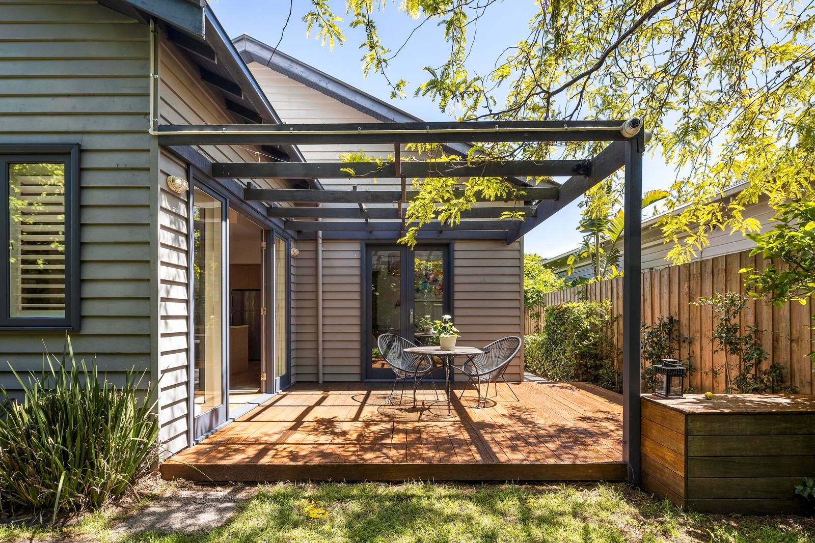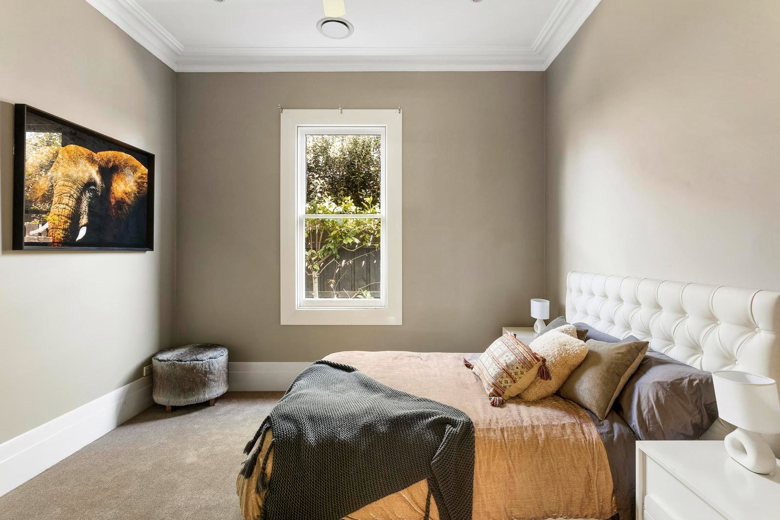 Step inside to a wide entrance hall adorned with original pressed metal detailing, setting the tone for the quality craftsmanship throughout. The heart of the home features a designer Bosch kitchen with concrete benchtops, walk-in pantry, and generous storage, flowing into expansive living and dining areas that open to a north-facing deck and private garden—perfect for entertaining or relaxing with loved ones.