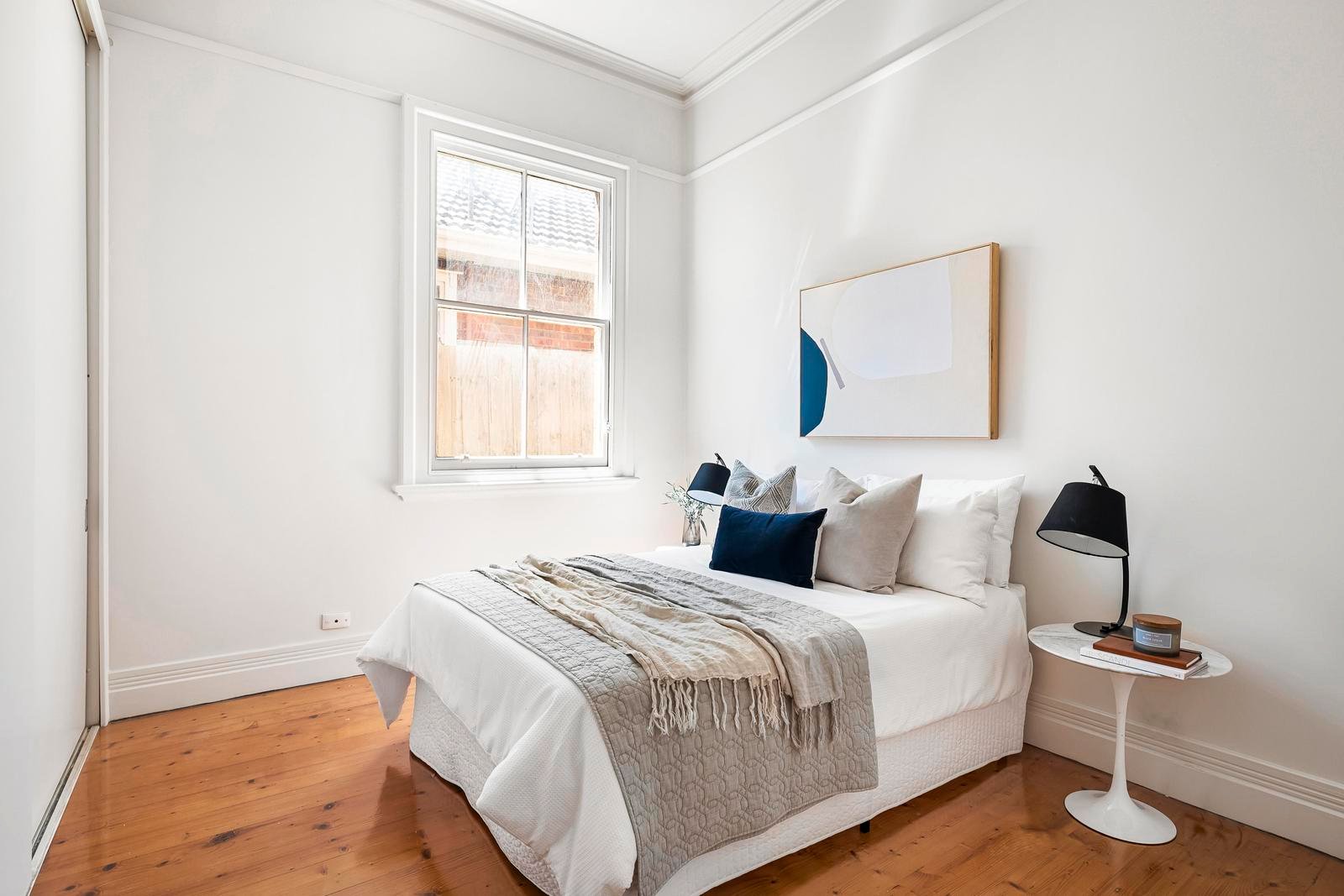 The engaging allure of Edwardian lines and the enduring appeal of renovated spaces combine to ensure this solid brick, free-standing Edwardian delivers precisely what’s desired from an address and exactly what’s required from an investment. Behind the charming façade, high ceilings and timber floors frame a format that features a welcoming living room with a bay window and an open fire-place while two double bedrooms providing generous proportions include one with built-in robes, the other with a period fire-place of its own.