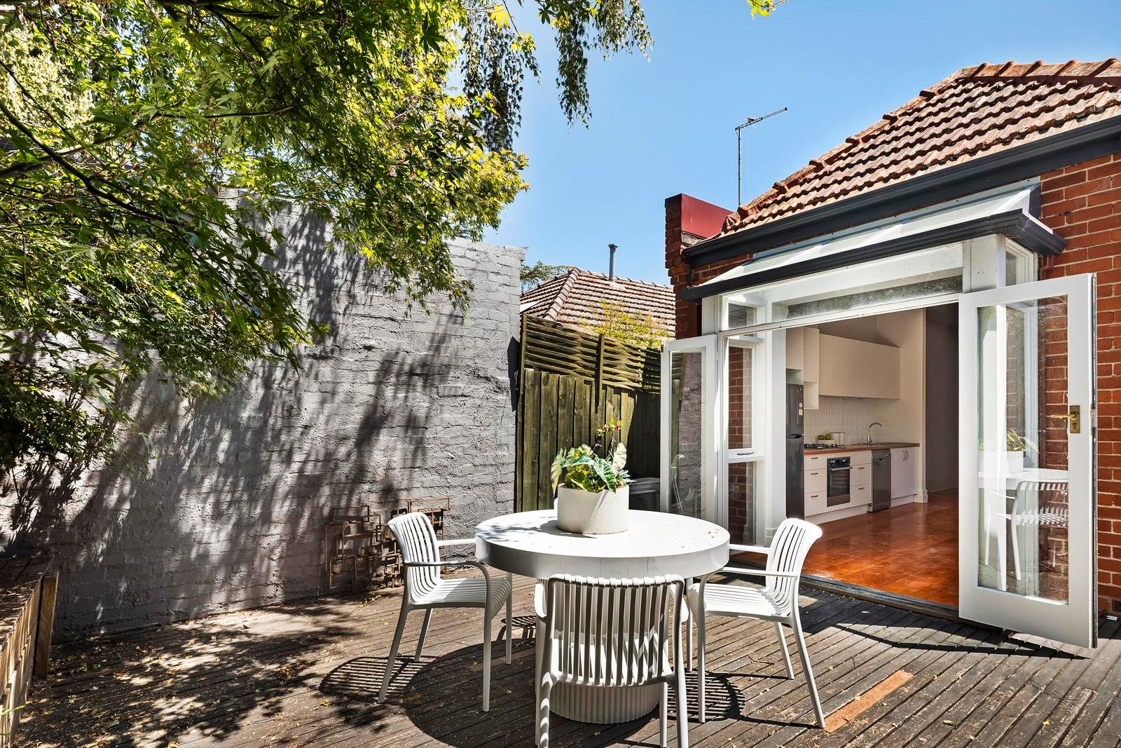 * Inviting living, bright kitchen/dining, decked rear courtyard