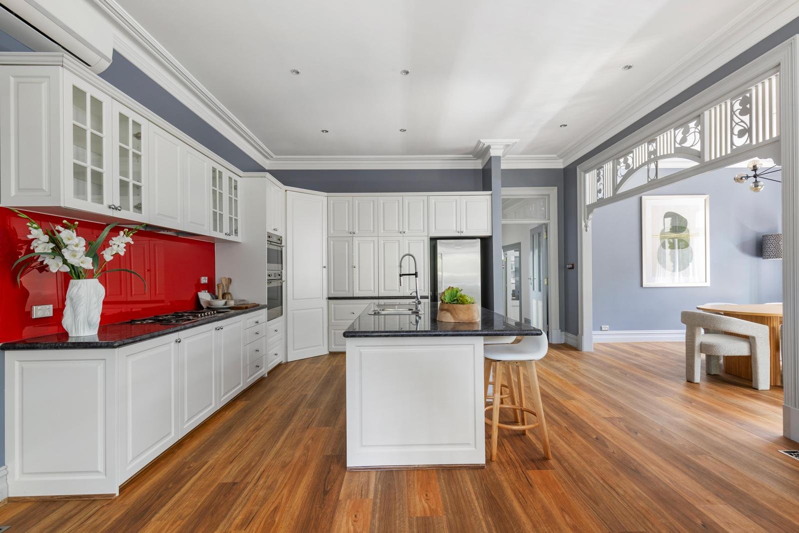 A thoughtful balance is struck between historical grandeur and modern comfort. Original fireplaces, intricate cornices, timber floorboards and leadlight windows are from a bygone era of craftsmanship. This refined sophistication provides the ideal backdrop for personal expression. A home that stands on its own, while offering the freedom to be made entirely your own.