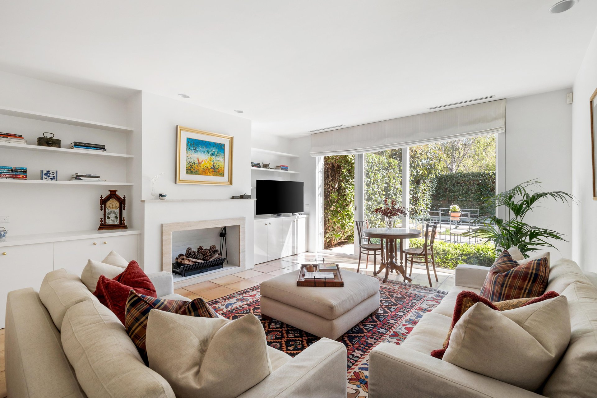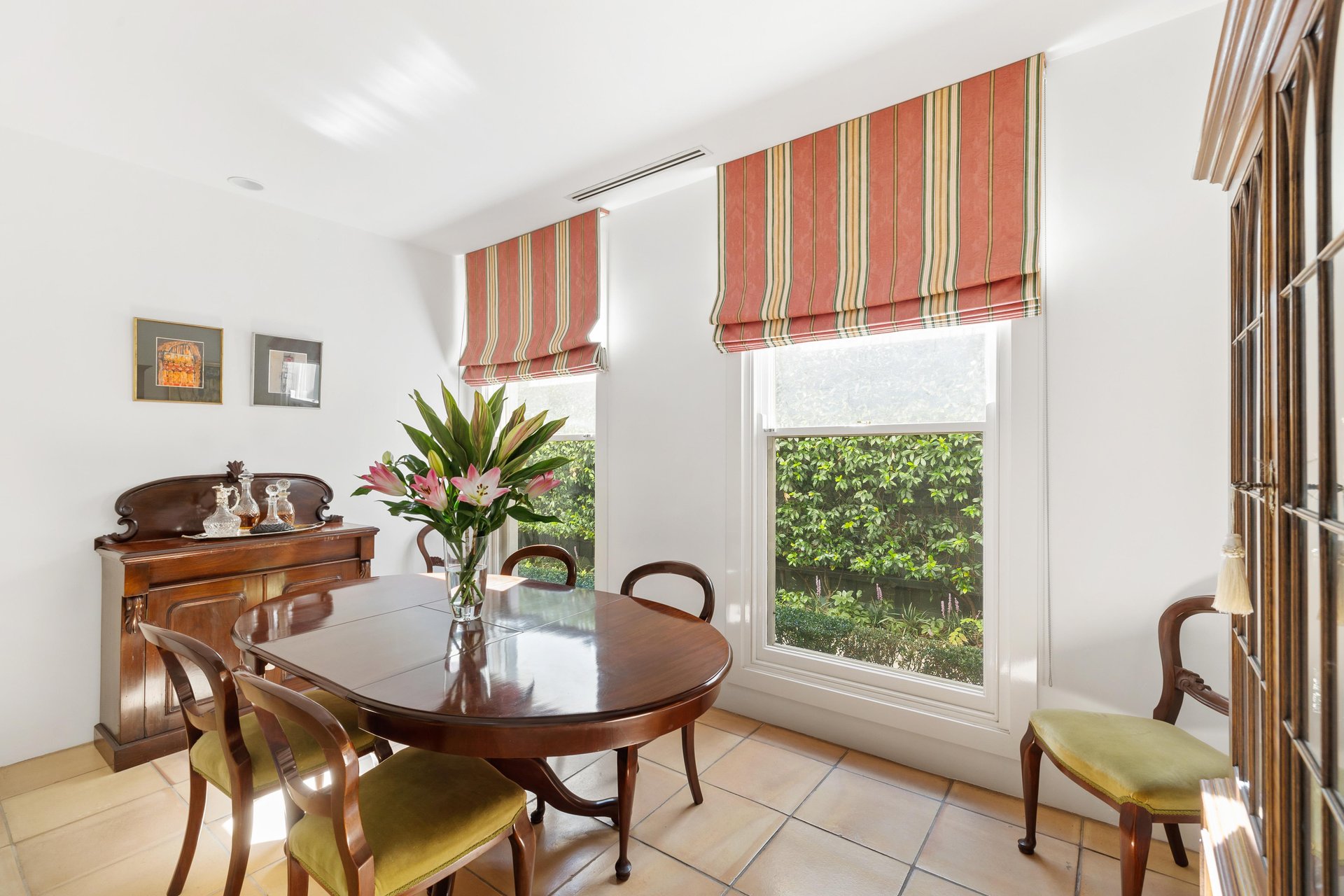 Embraced by high hedging to create a wonderfully lush oasis, the three living zones all enjoy this verdant backdrop. The sunny north alfresco flows into the living room with open fireplace, matched with a premium granite kitchen for effortless entertaining. The formal dining room is a versatile space which could double as a study or retreat if desired. A peaceful hideaway after a long day, the fire-side family room extends out to a second paved alfresco.