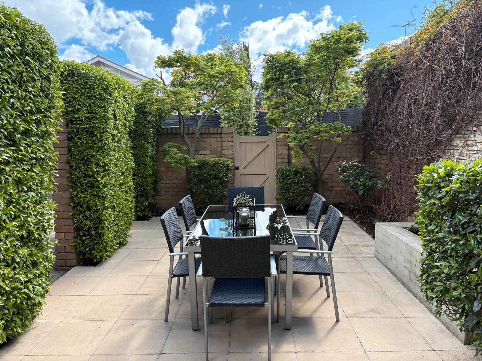 The modern kitchen features stainless steel appliances and excellent storage, while both bedrooms enjoy garden outlooks and peaceful separation with spacious built in robes. The main bedroom looks directly out onto a serene brick-paved retreat framed by lush greenery.
