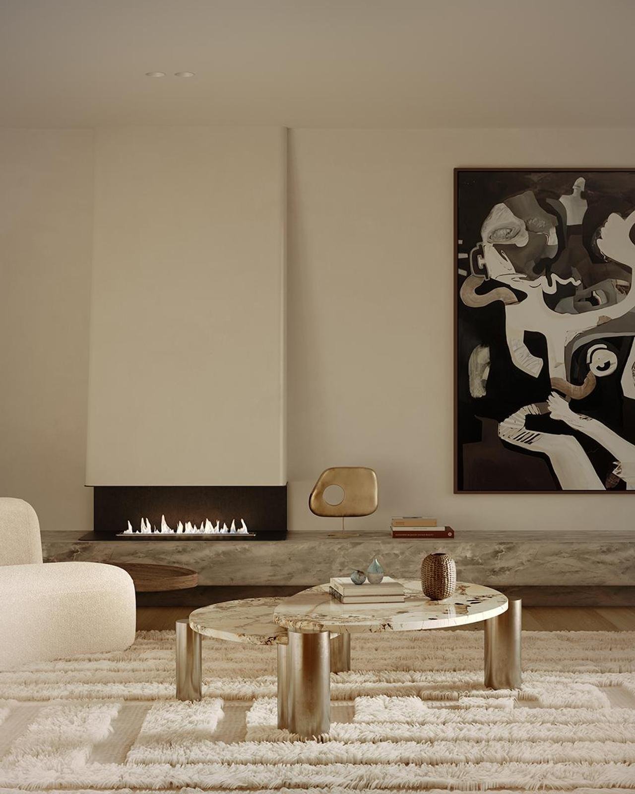 * Custom sculptural fireplace